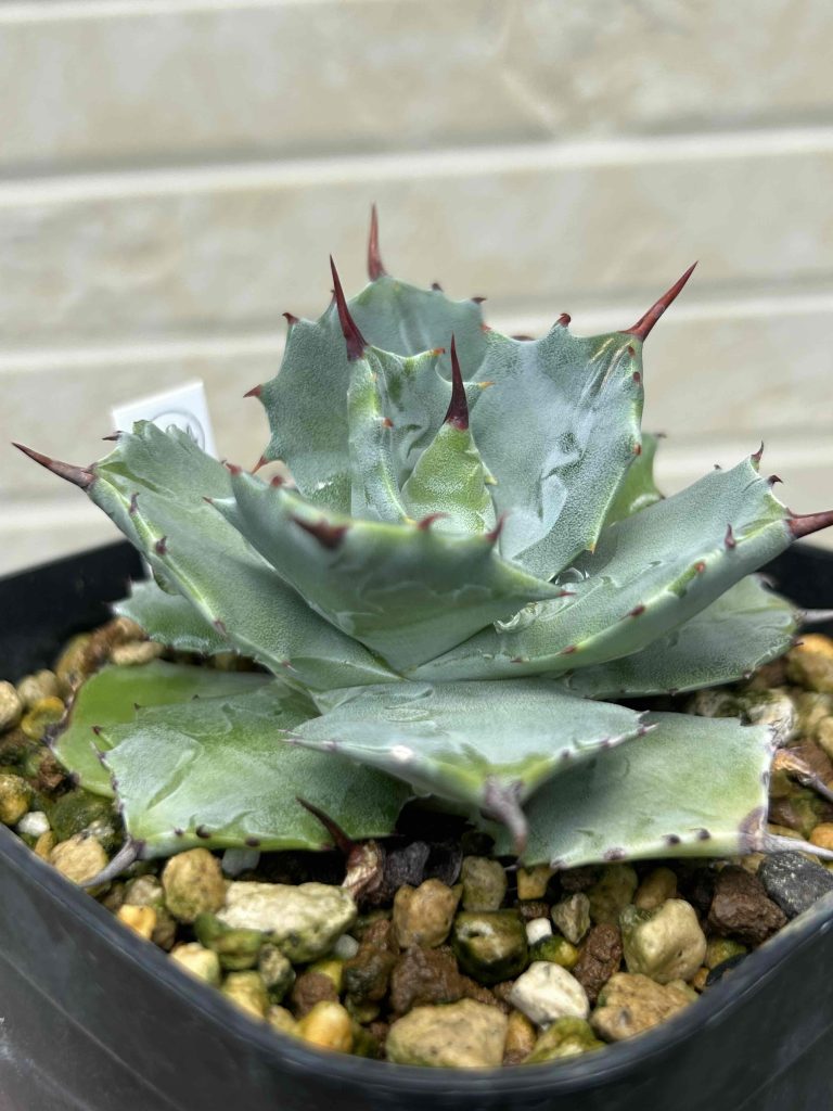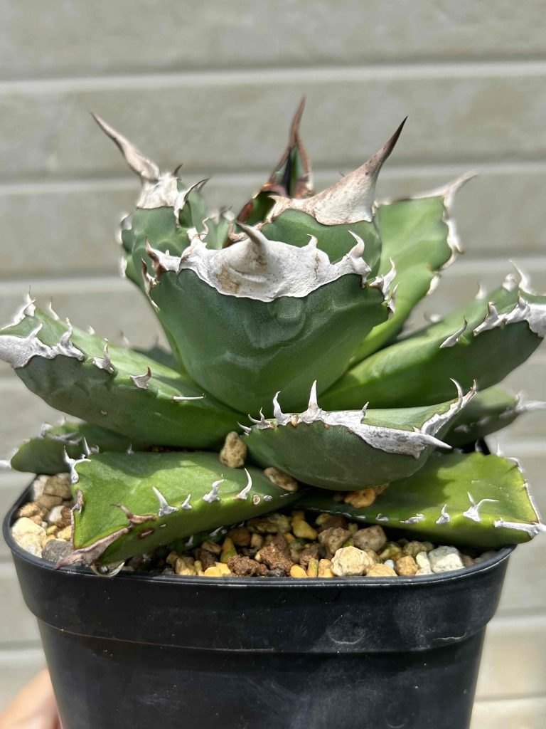 葉の先端や縁に付けるワイルドな鋸歯と力強いフォルムが、特徴的な人気品種です。 圧倒的な人気を誇り、アガベの人気をけん引しています。 耐寒温度は5℃ほどなので、厳しい寒さに当てるのはおすすめできません。 成長速度は早く子株をよく吹くため、胴切りや縦割りなどを行うことで、どんどん増やせるアガベです。 作家鉢と一緒に飾ることで、そのワイルドな魅力にますます惹きつけられるでしょう。