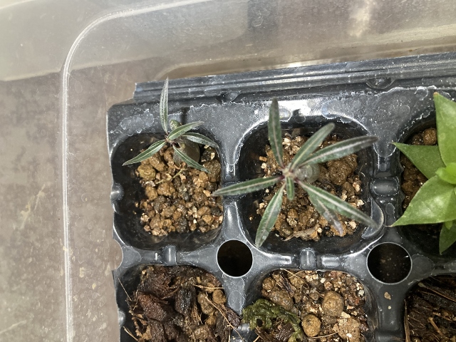 1株は管理しやすくするために、小さな鉢に植え直し。現在、ヒートマットの上の管理箱に避難。