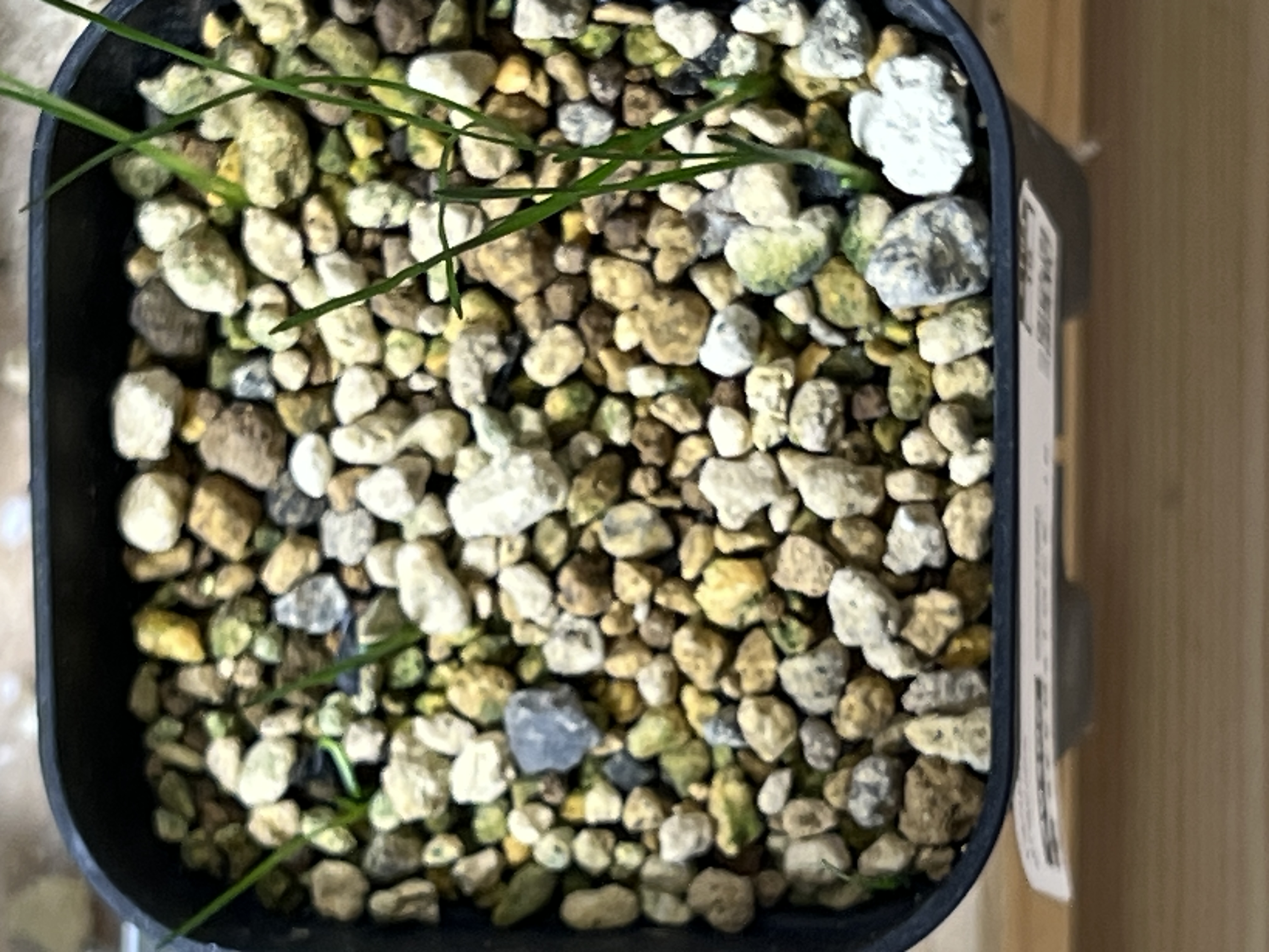 2025.12.16播種2025.12.21撮影3/7粒 発芽当初は無処理で赤玉土、パーライトに播種...