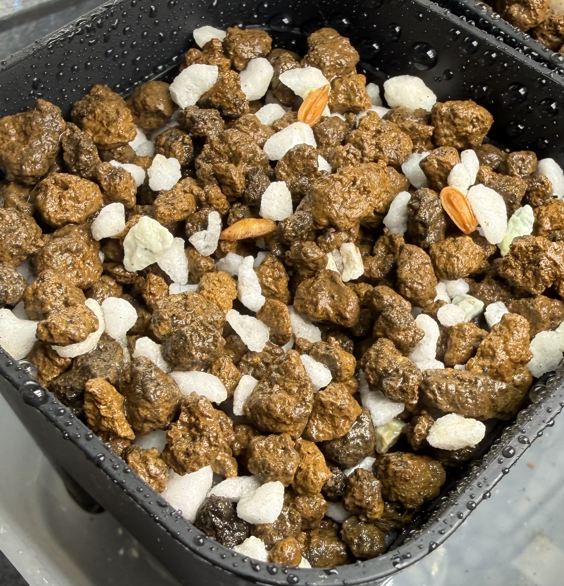 2025.12.7播種2025.12.16撮影12個中9個発芽メネデール ダコニール溶液でタッパー密...