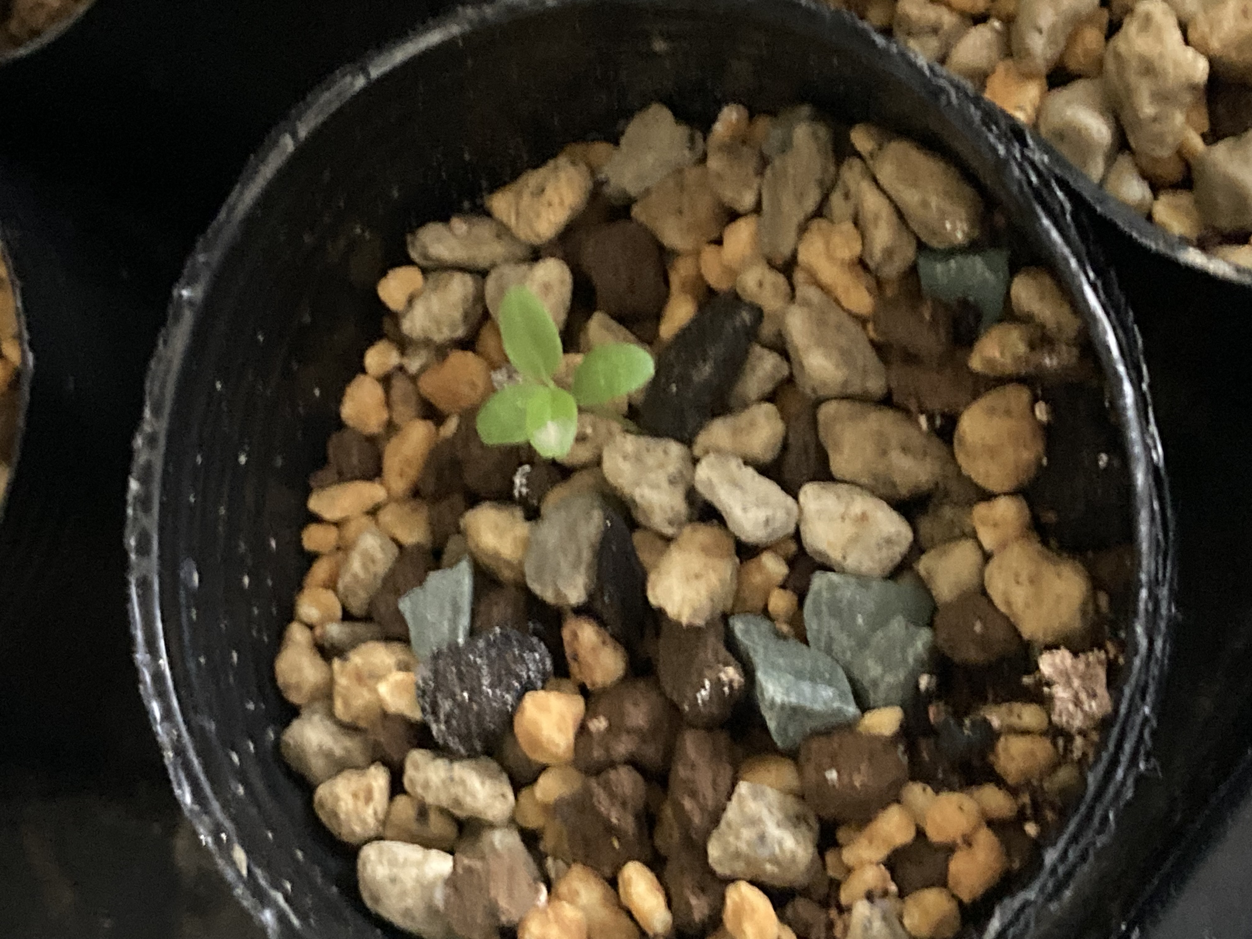 2025.12.16播種2025.12.21撮影3/7粒 発芽当初は無処理で赤玉土、パーライトに播種...
