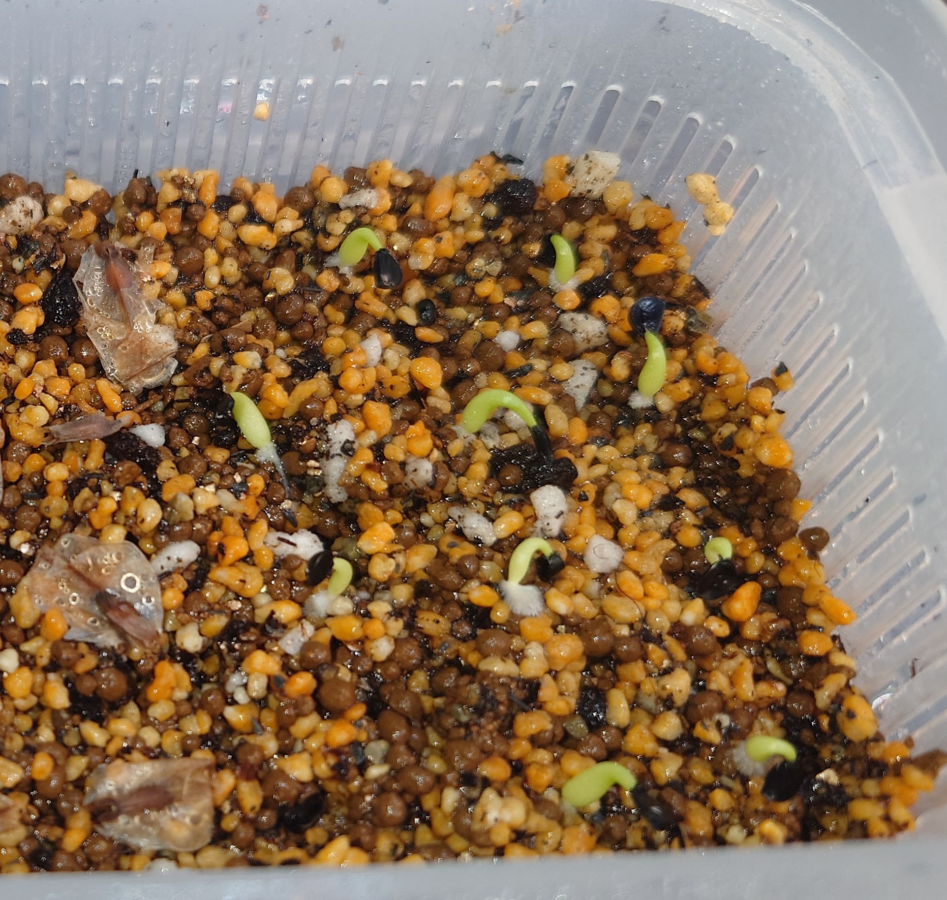 2025/12/18播種 2025/12/23撮影播種数 30粒くらい/ 発芽数 12粒くらい播種前...