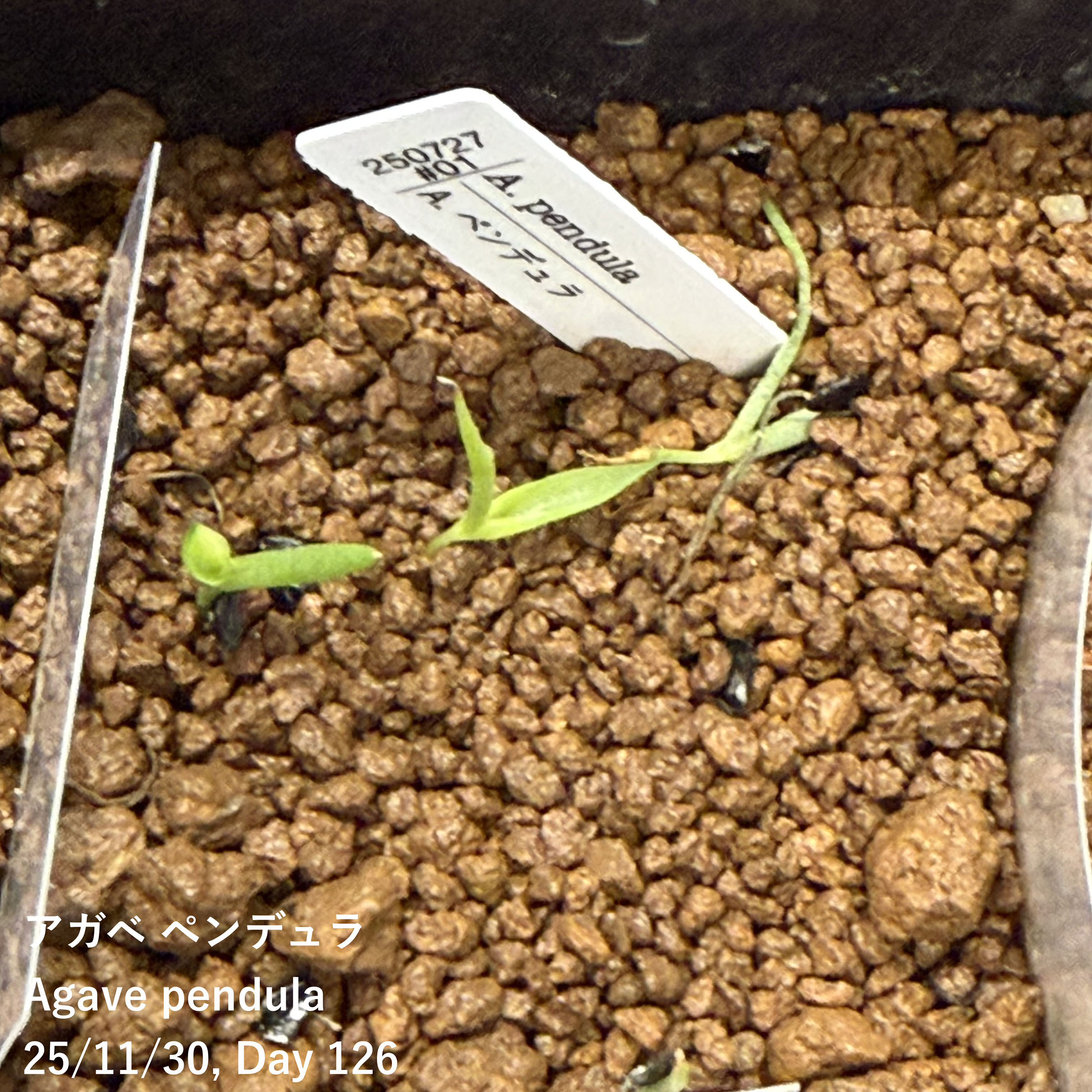 25/7/27播種 25/11/30撮影12粒播種/3粒発芽10粒(11)入りモニターで入手25/7...