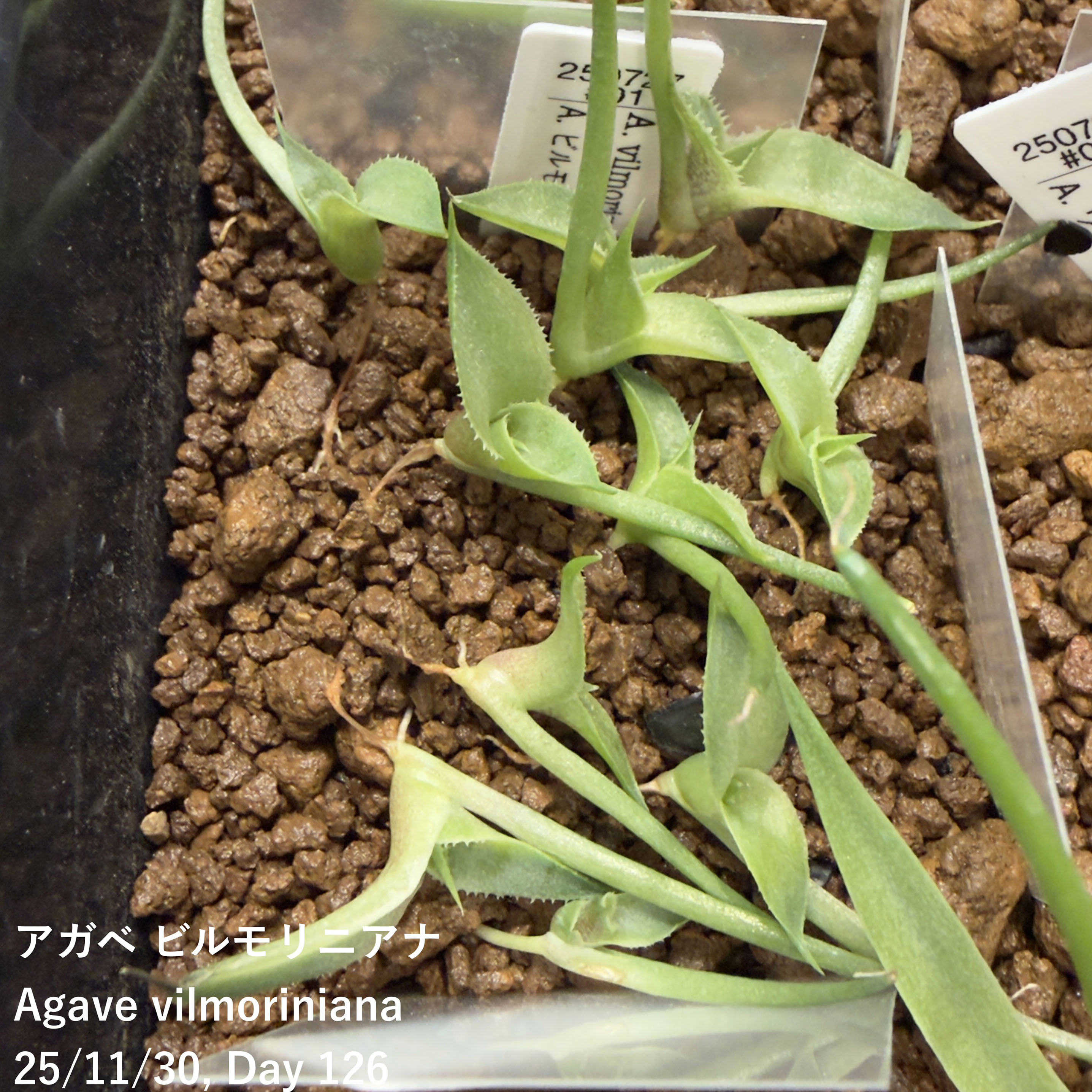 25/7/27播種 25/11/30撮影12粒播種/7粒発芽23/12/15 10粒(14)入りモニ...