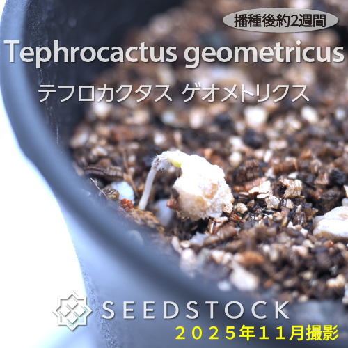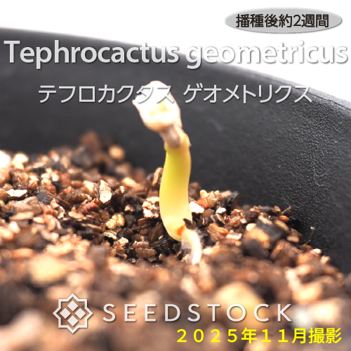 テフロカクタス ゲオメトリクスは、ウチワサボテン属(Opuntioideae)に属するサボテンで、 灰色から紫色を帯びた球状の茎節を形成します。茎節の直径は約4〜5cmで、 複数の球体が積み重なるように成長します。表面には3〜5mm程度の短い刺がまばらに生え、 球体に沿うような配列を示します。成長速度は非常に遅く、茎節が1〜2年に1節程度しか増えません。 成熟株では淡いピンク色から白色の花を咲かせます。