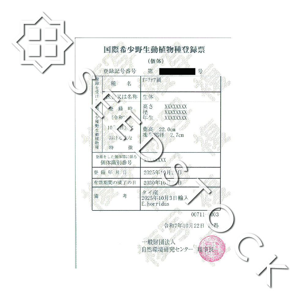 国際希少野生動植物種に該当し、登録票を同梱します。