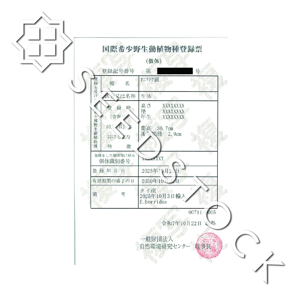国際希少野生動植物種に該当し、登録票を同梱します。