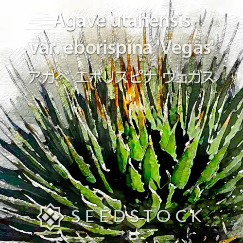 - 成長した株の特徴: 美しい大型のアガベで、幅広い淡青色の葉を持ちます。アメリカのカリフォルニア州と、メキシコのバハ・カリフォルニア州(ノルテ)及びソノラ州にまたがるソノラ砂漠の、非常に乾燥した熱い岩場や低地の砂地に自生しています。栽培においては、厳しい干ばつやかなりの低温にも耐えられます。