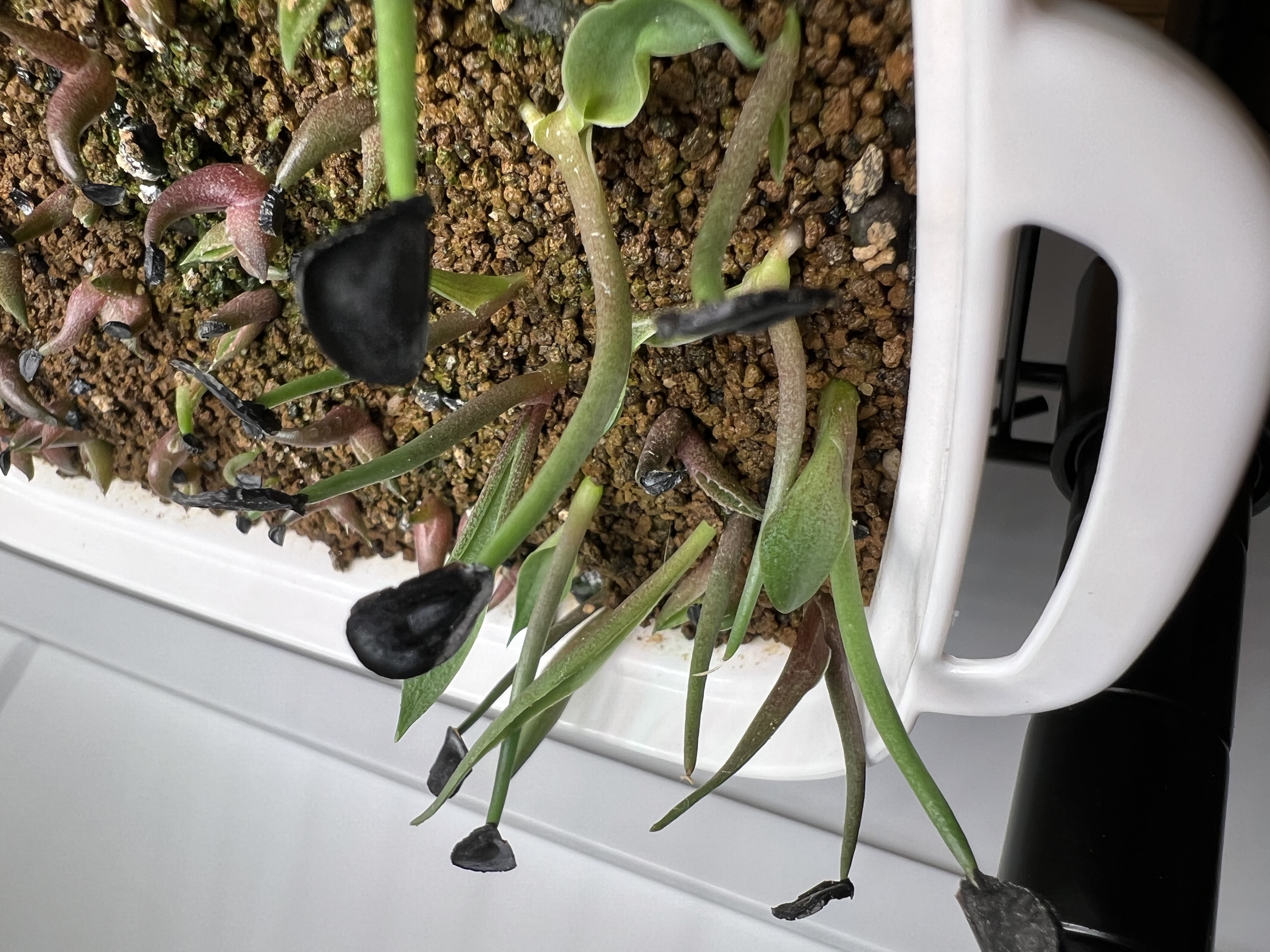 2024/6/3播種 2024/6/30撮影[ 播種数 / 発芽数 ] 10粒/ 9粒[ その他(用土や管理方法など)]播種前にベンレート+メネデール溶液に1日程度浸漬赤玉メインの用土に敷き播種、20度〜25度で管理