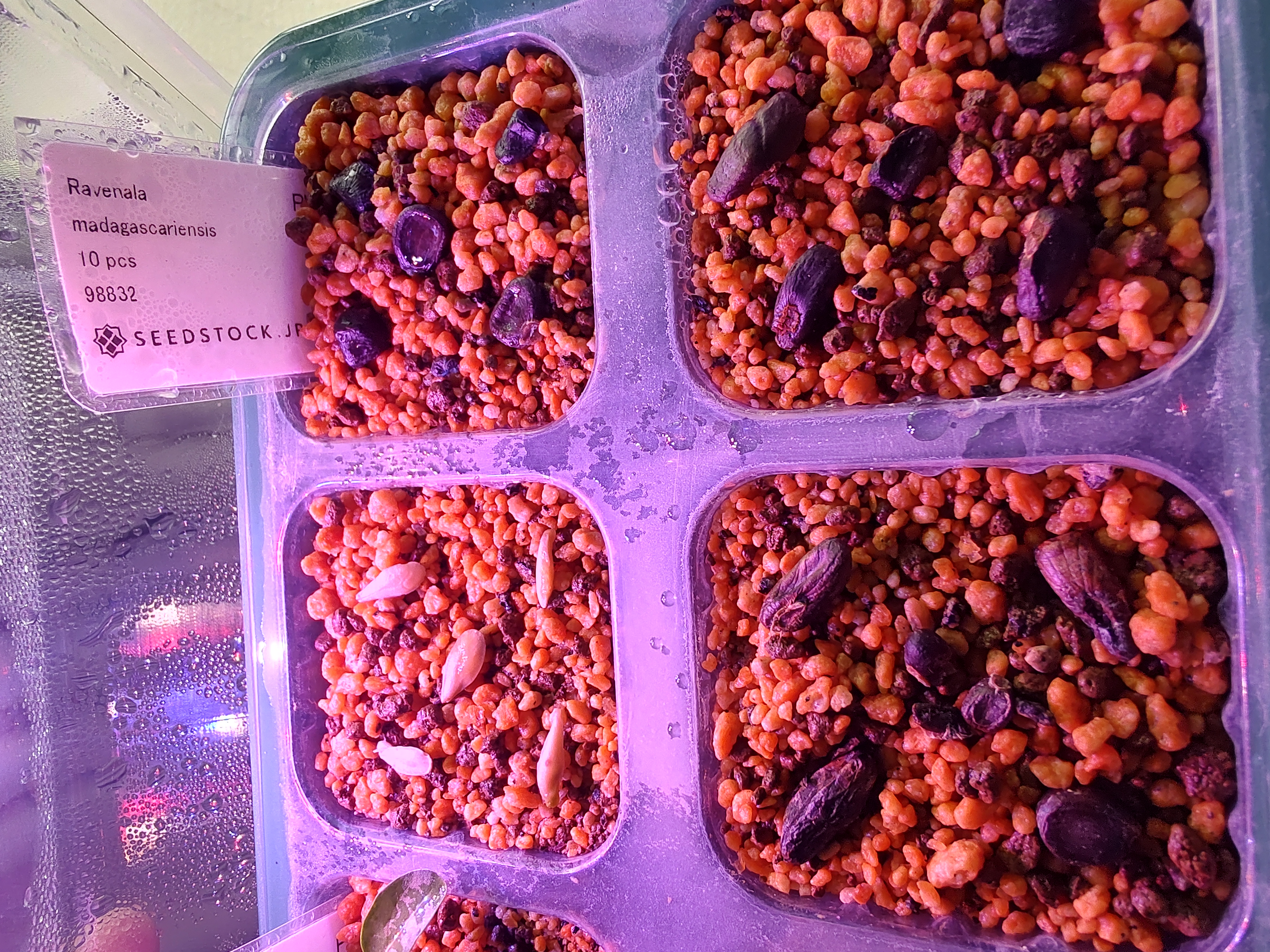 赤玉土+鹿沼土で播種、25度〜30度でLEDポッドで管理