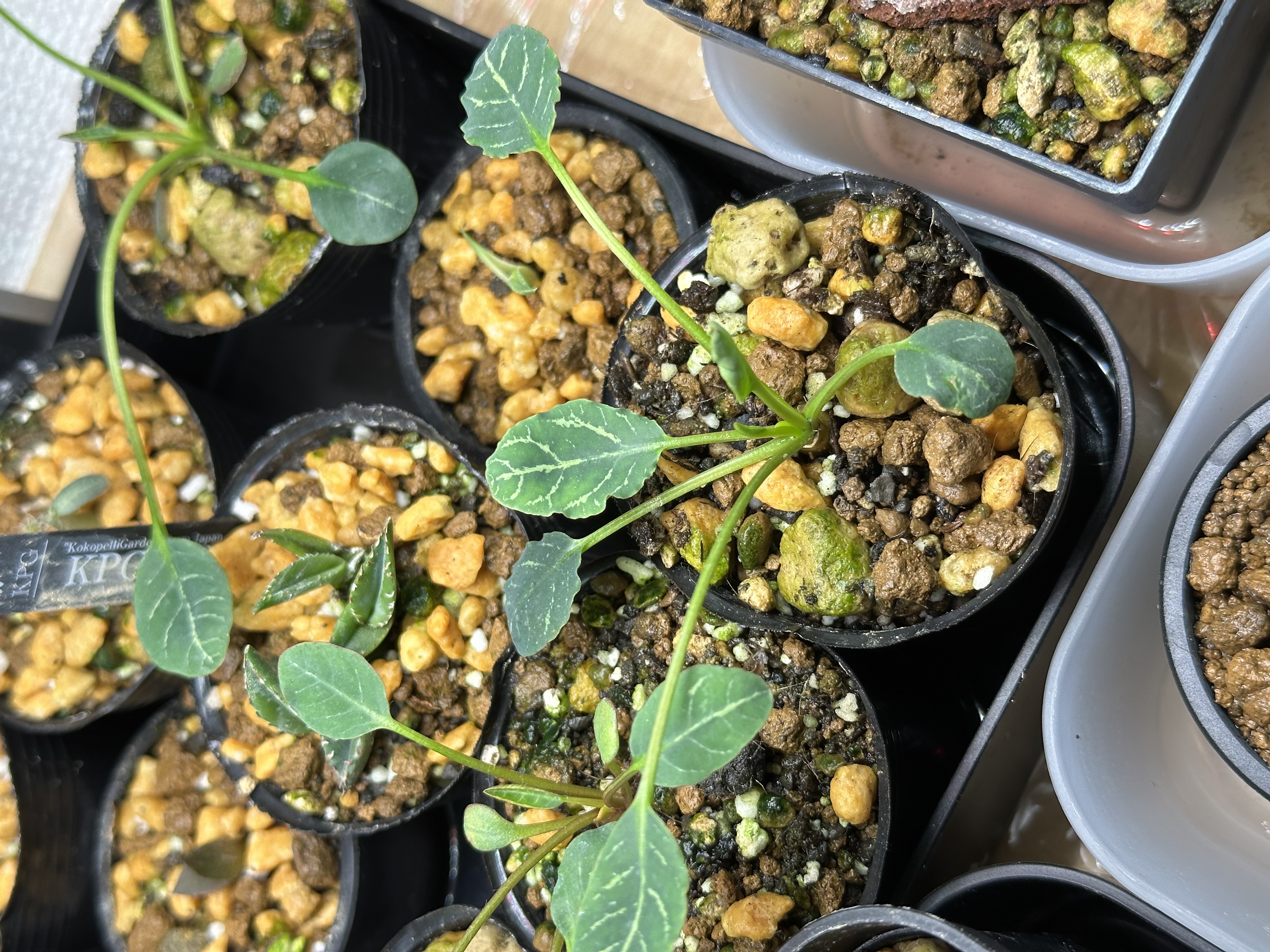 以前ギラウミニアナ種子の取り違えにて発芽した子達。少しづつ塊根部が大きくなってます。