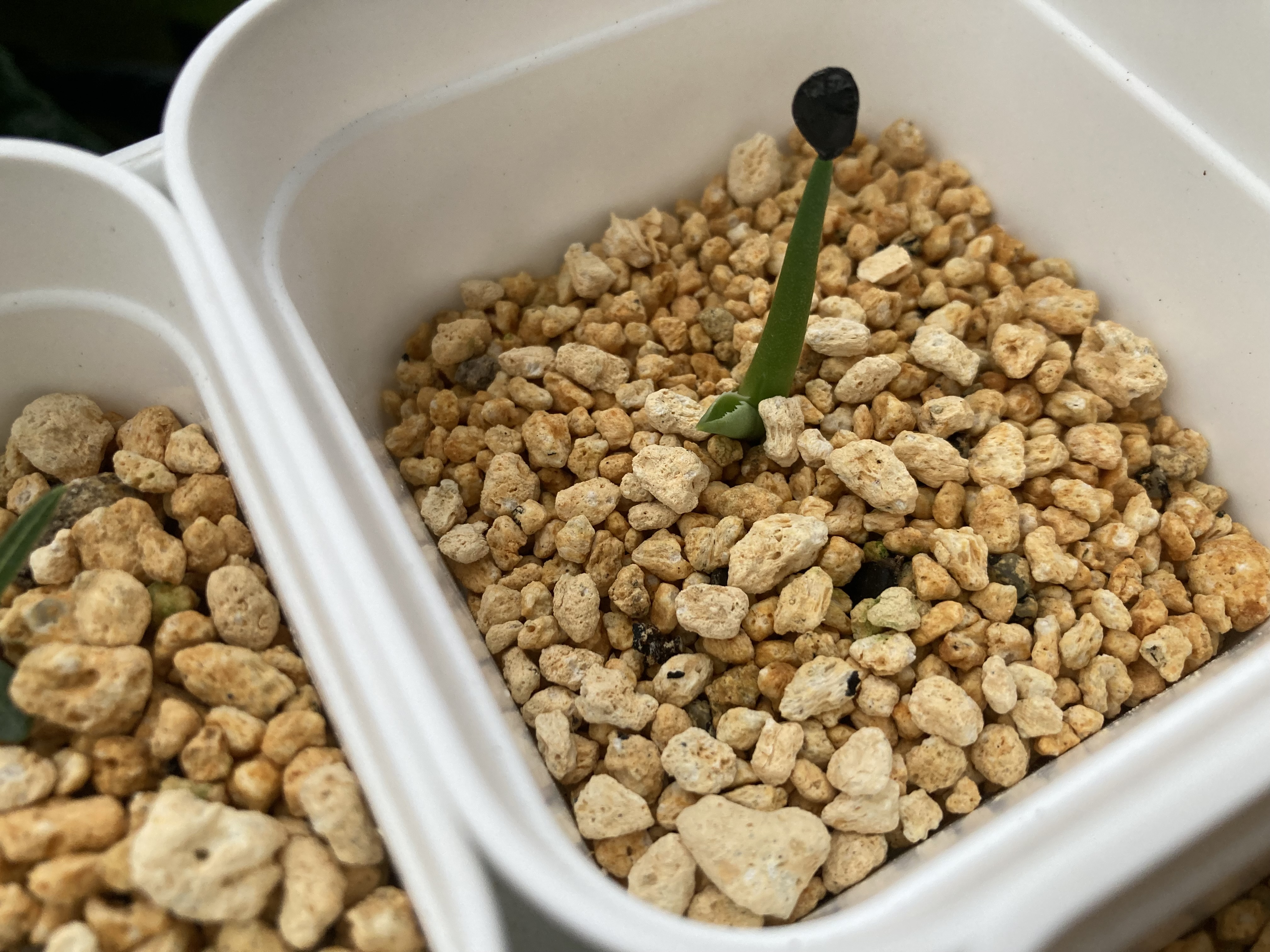 もう一粒も発根はしているようですが、なかなか葉が出ないです。気長に育てていきます。