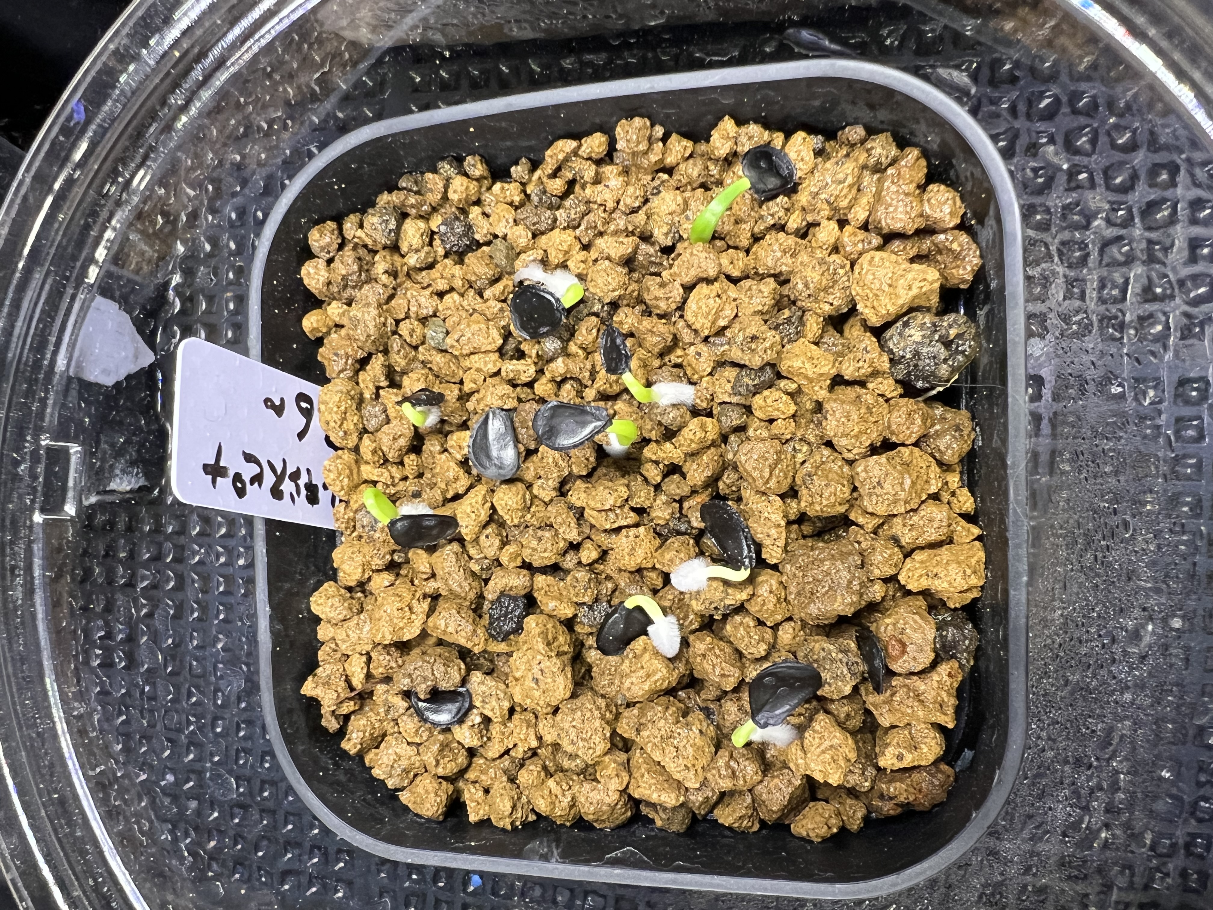 ・播種まえに種をメネデール、ベンレート混合の水溶液に数時間浸しました。