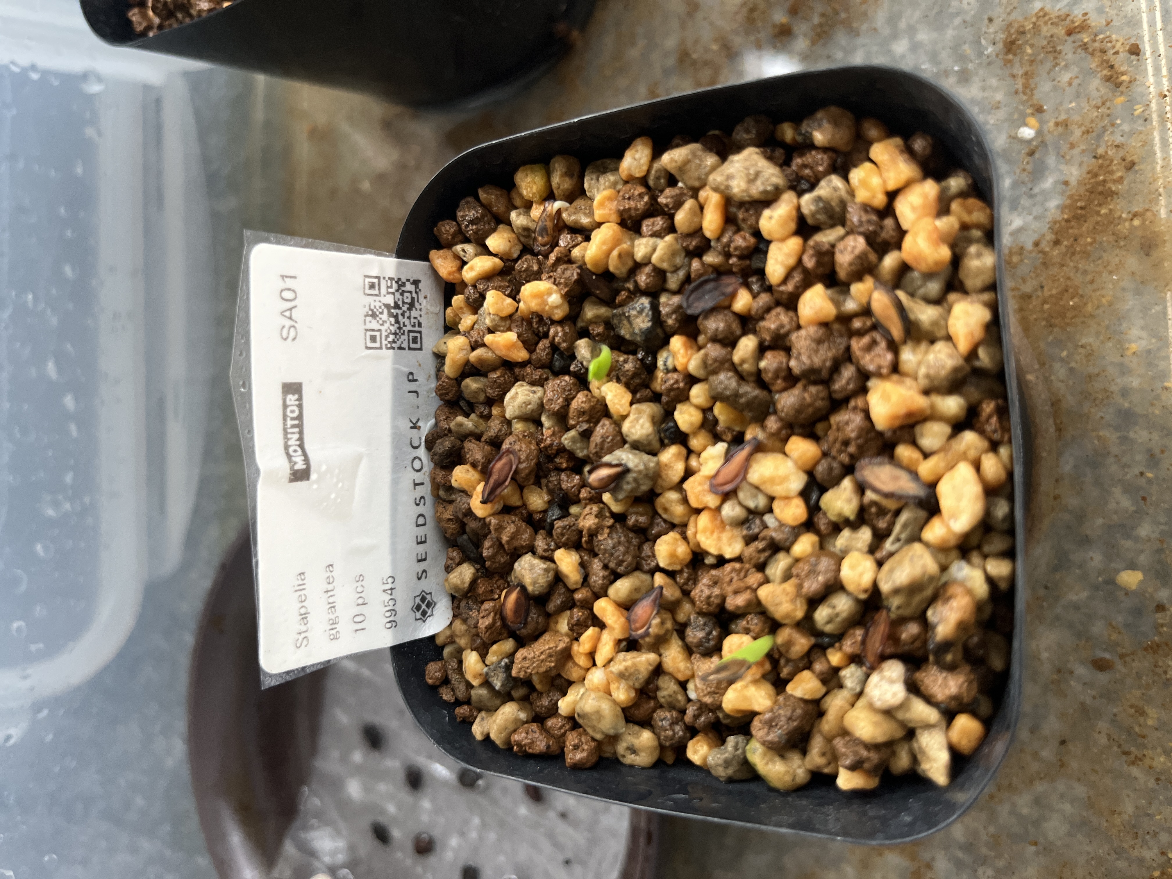 2024/7/9播種 2024/7/14撮影[ 播種数 / 発芽数 ] 12粒/ 3粒[ その他(用土や管理方法など)]播種前にメネデール溶液に1日程度浸漬赤玉メインの用土に播種、25度〜30度で管理