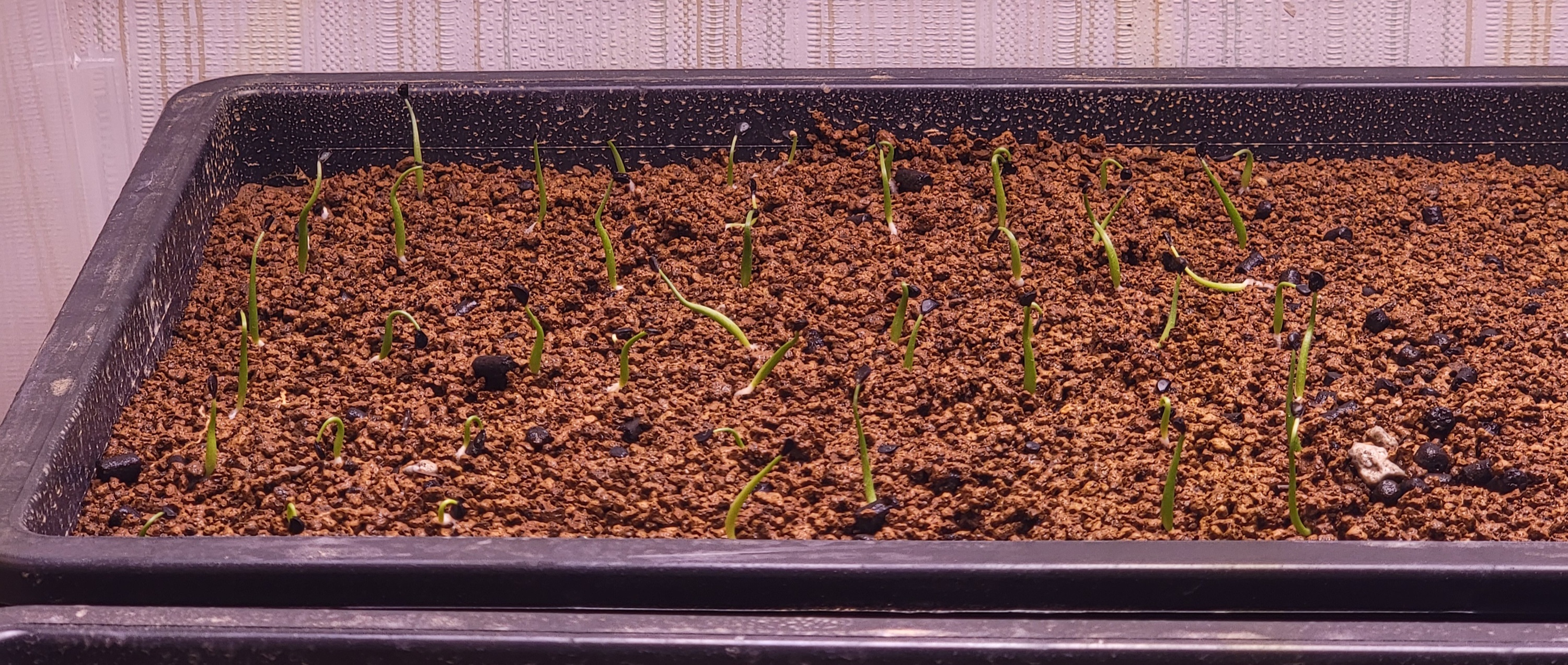 軽石ゴールデン培養土赤玉土に播種し、25~30℃でカバーをかけて管理。