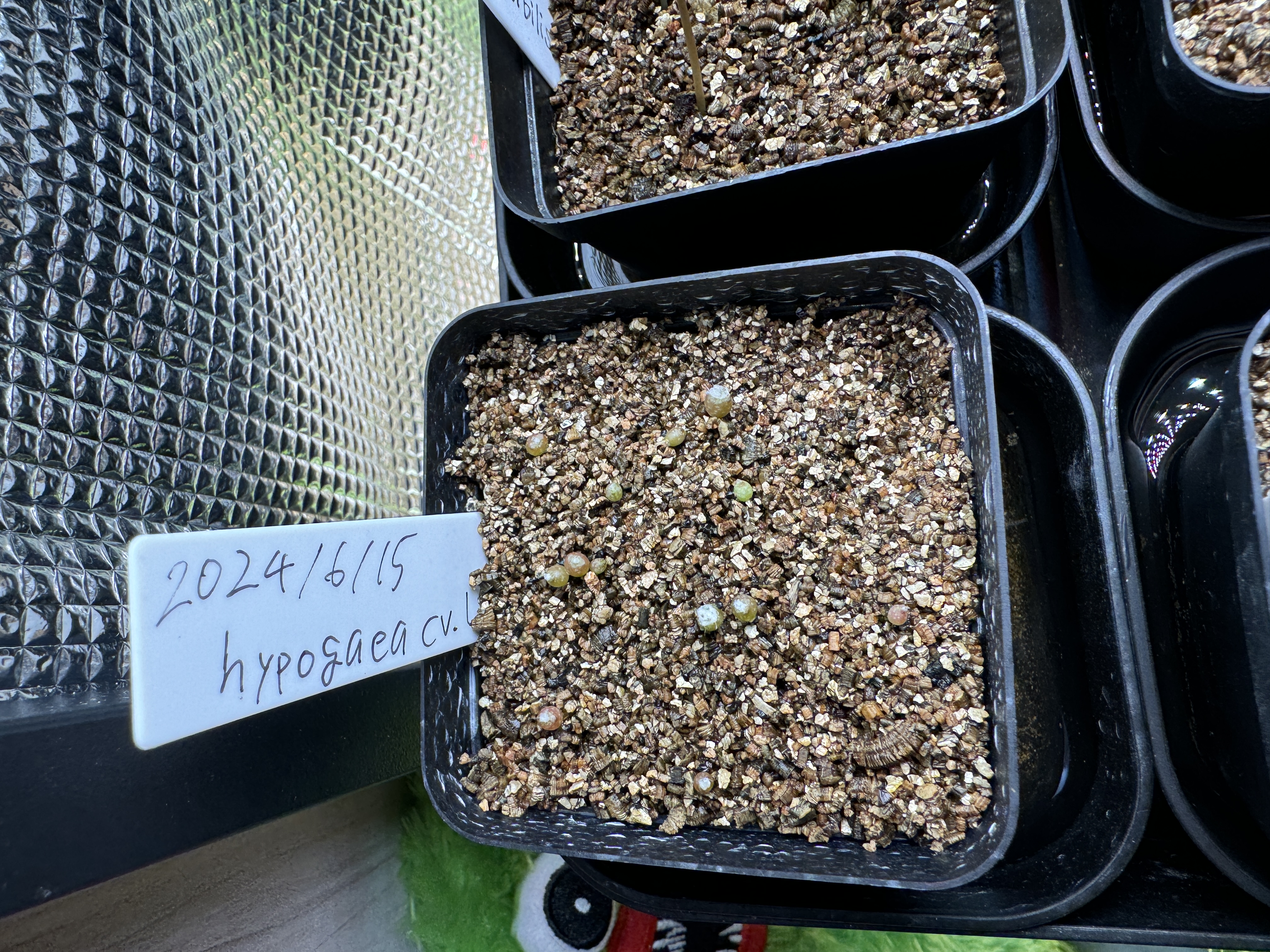 小粒の赤玉の上にバーミキュライトを敷いた用土に播種