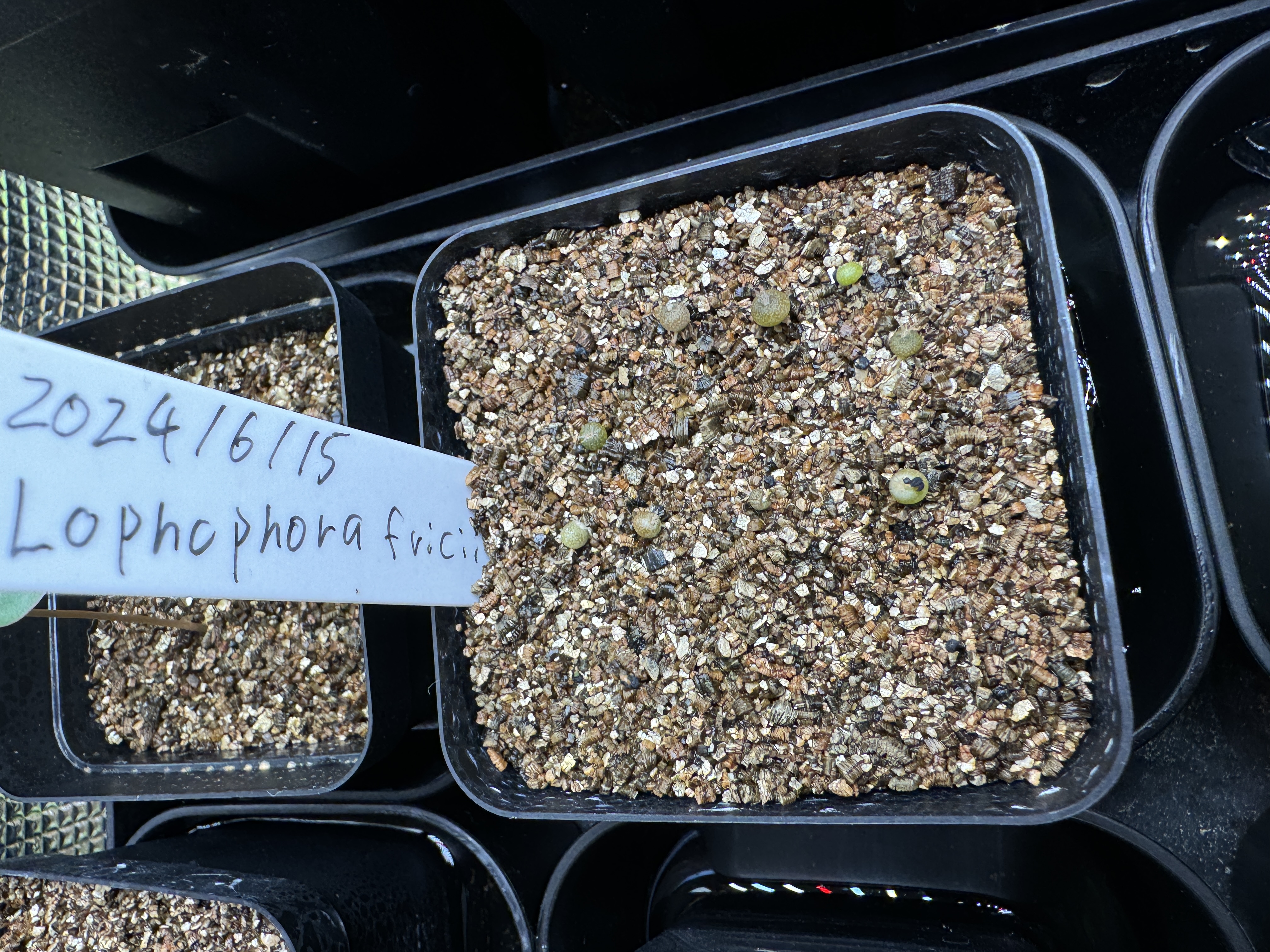 小粒赤玉の上にバーミキュライトを敷いた用土に播種、発芽するまでラップをかけ毎日霧吹きしました