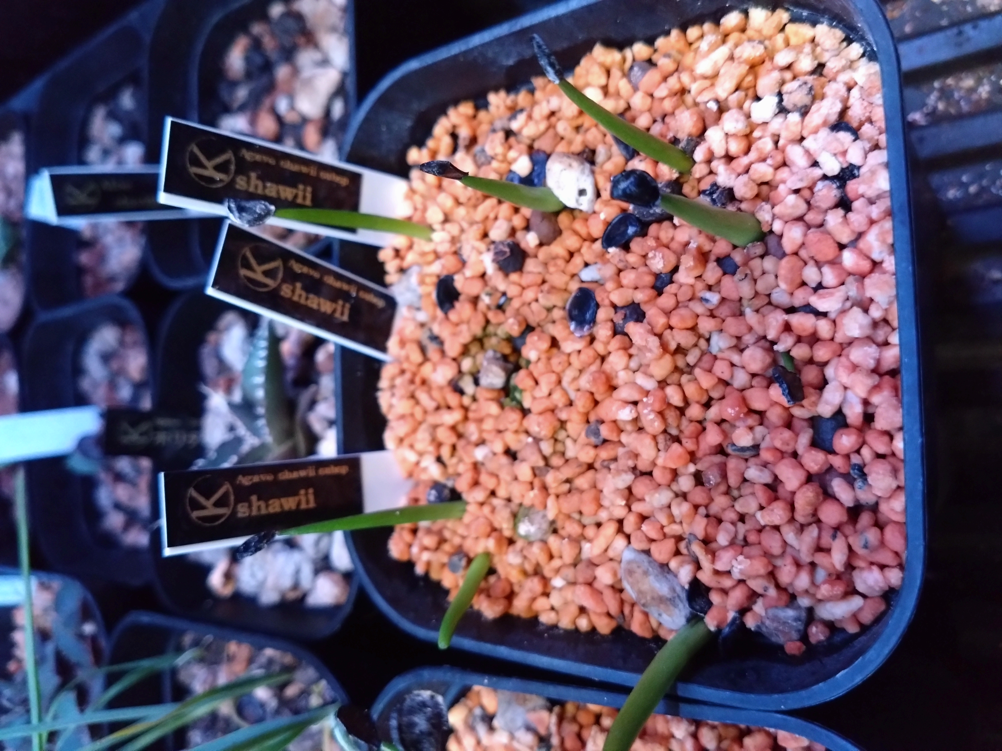 60個播いて発芽したのは一粒で、発芽しなかった種59粒を一つにまとめて放置してたら7つ発芽