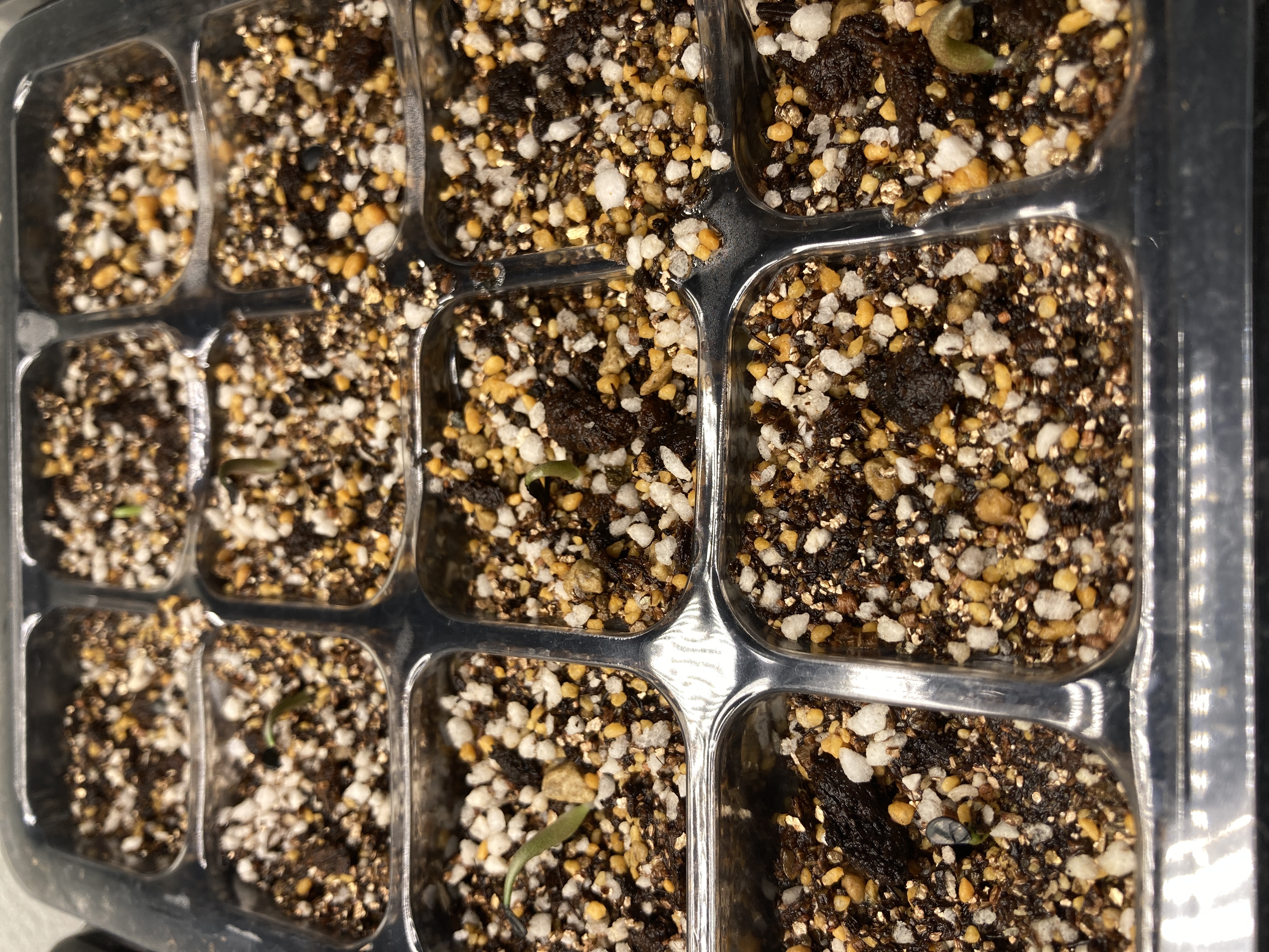 [ 播種日 / 撮影日 ]2024/7/19播種 2024/7/26撮影[ 播種数 / 発芽数 ]11粒/ 7粒[ その他(用土や管理方法など)]播種前にベンレート+メネデール溶液に14時間程度浸漬