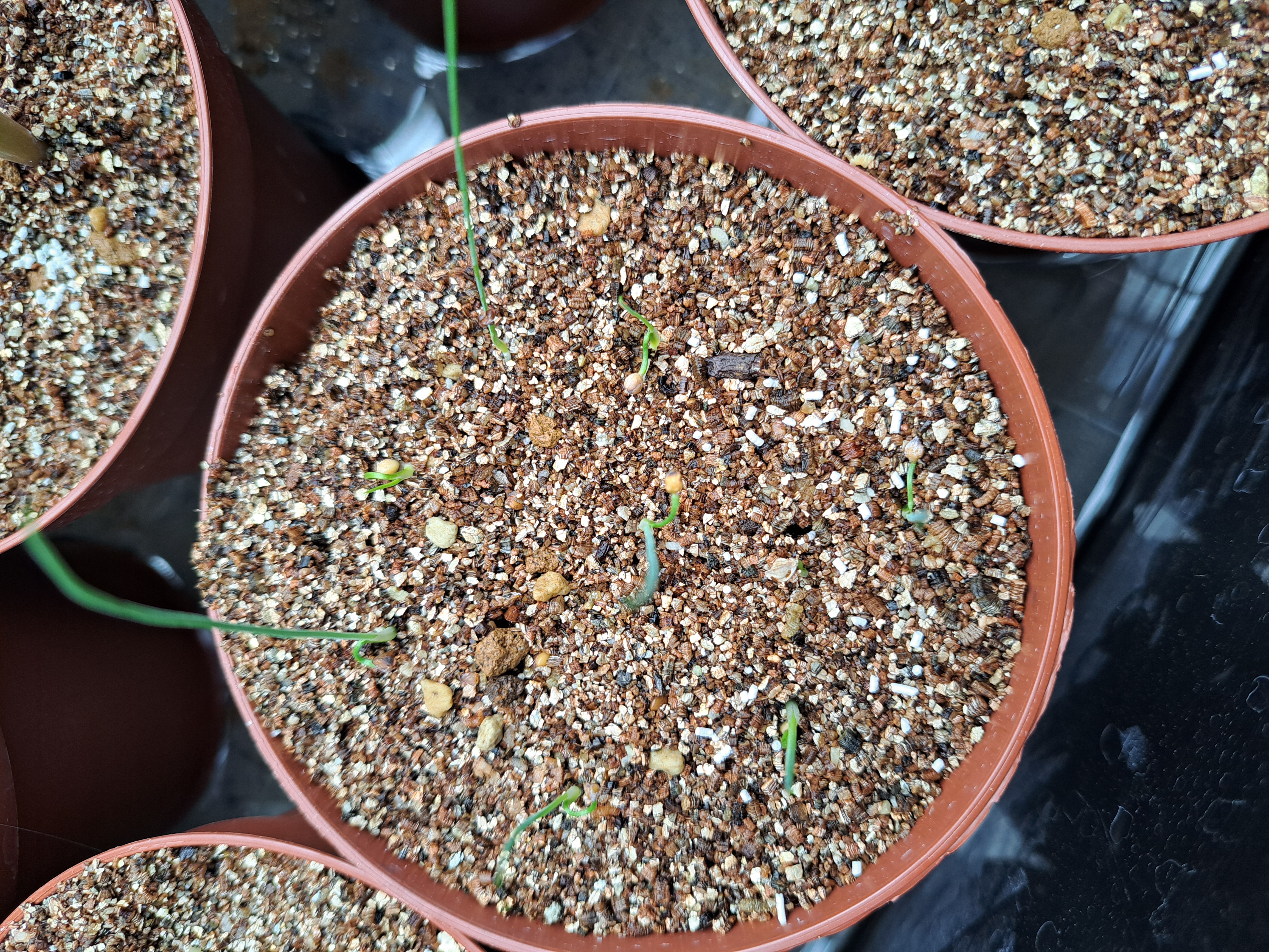 赤玉メインの用土に細目のバーミキュライトを敷き播種