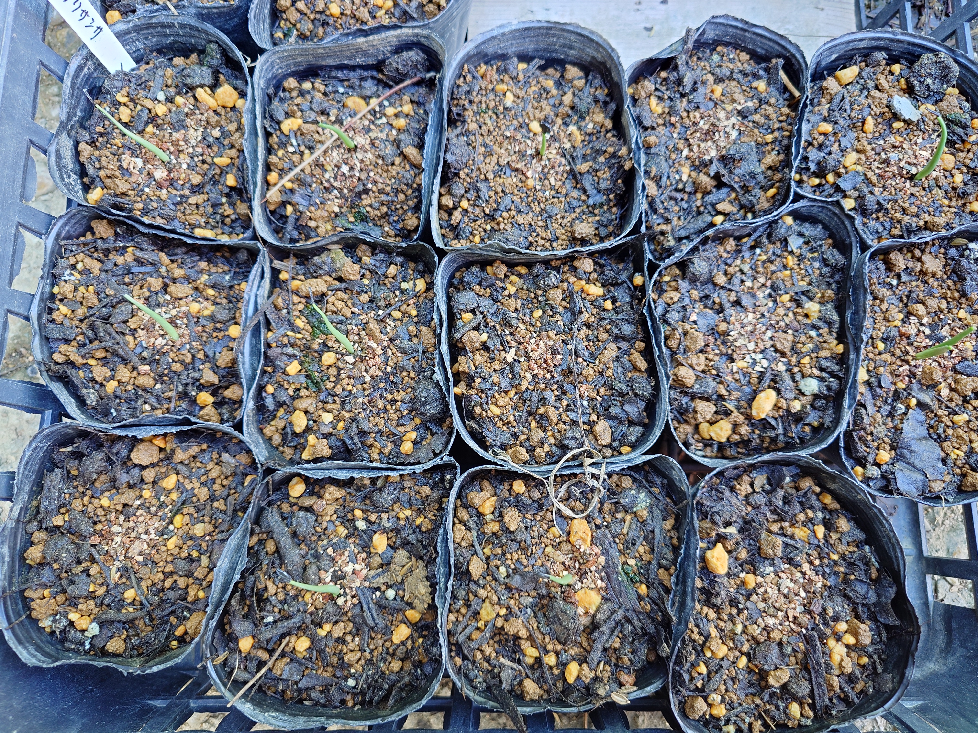 ・播種した種は、 粗く篩にかけた赤玉土と鹿沼土、または