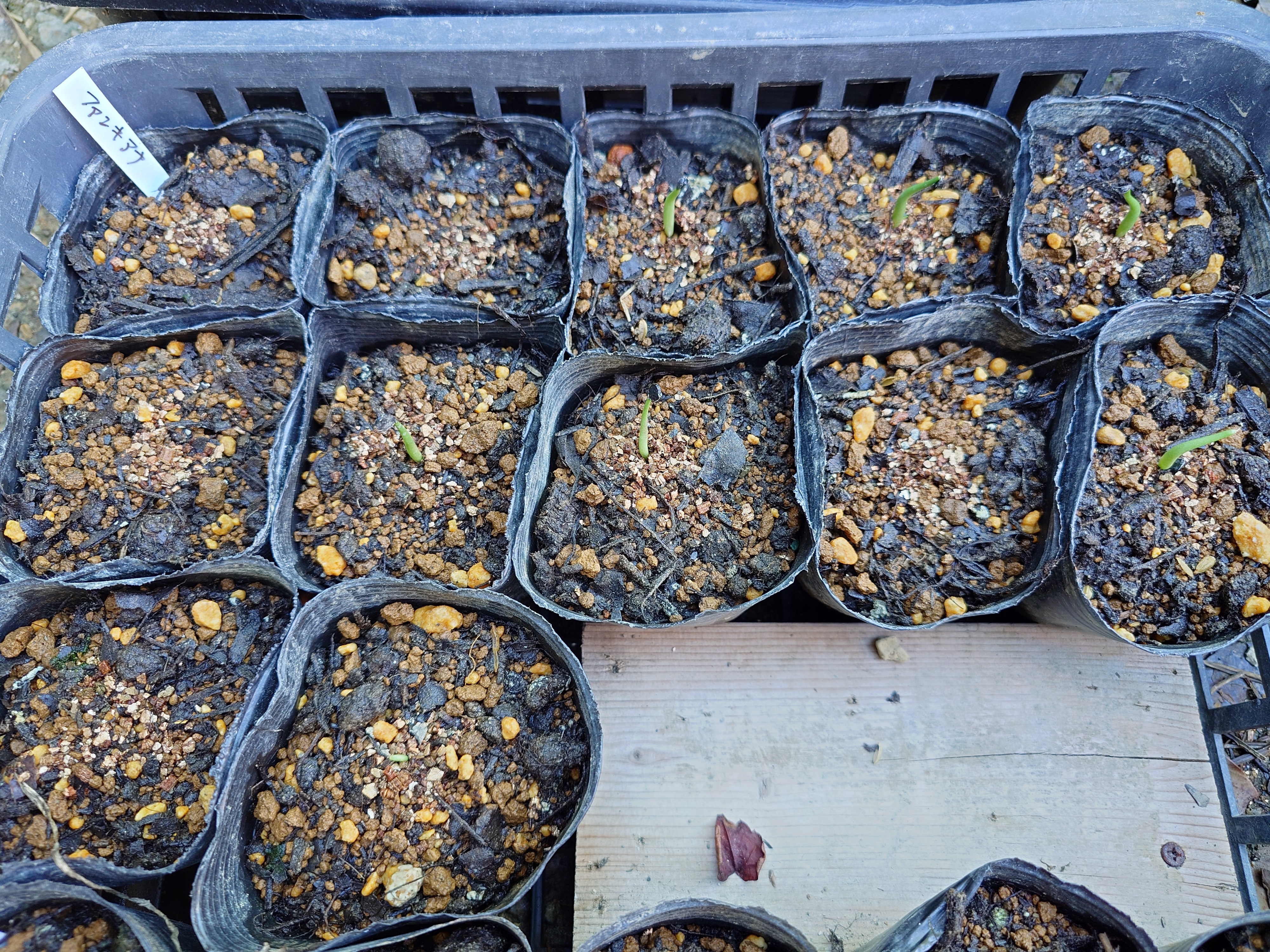 ・播種した種は、 粗く篩にかけた赤玉土と鹿沼土、または