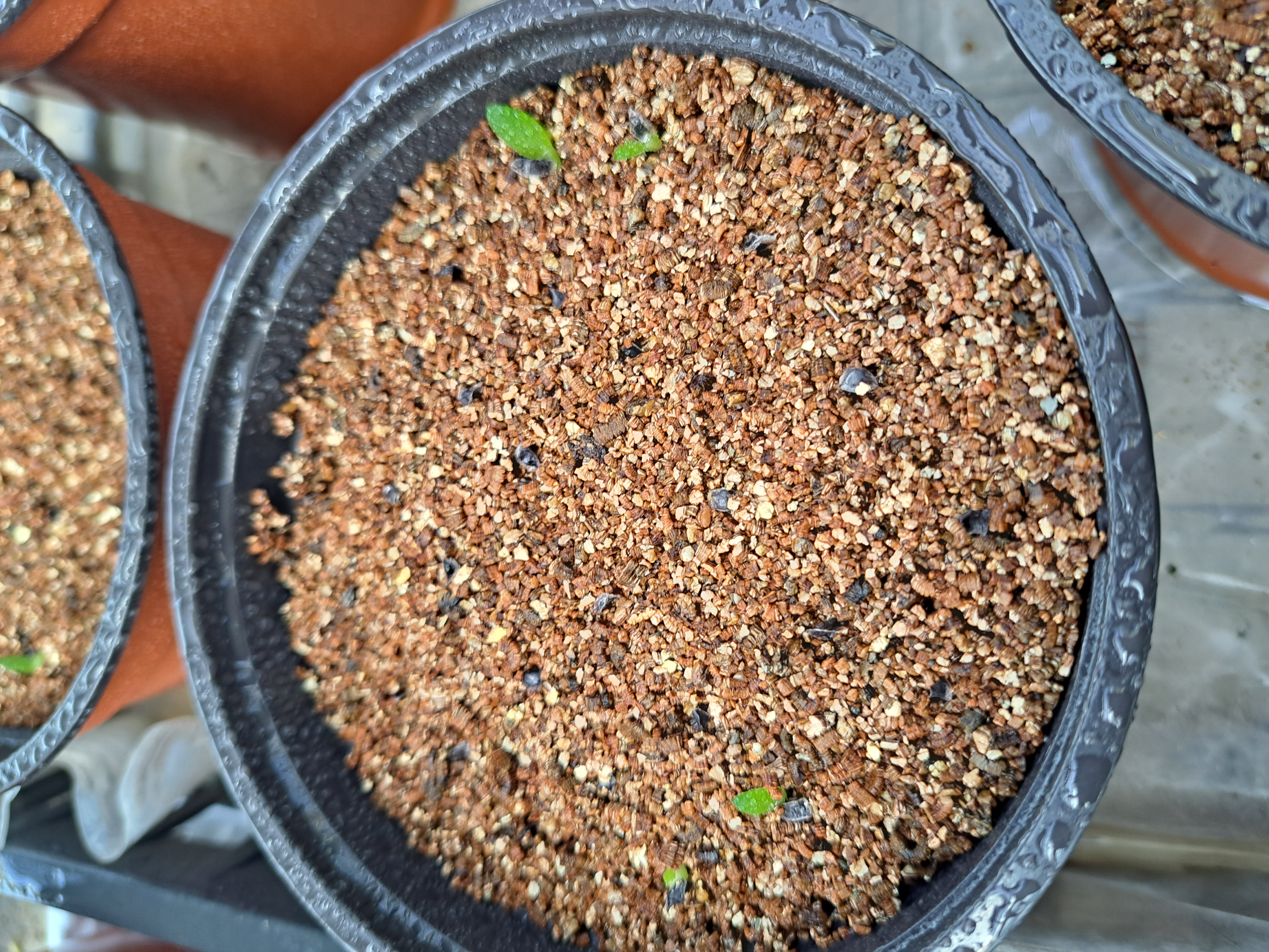 赤玉メインの用土に細目のバーミキュライトを敷き播種