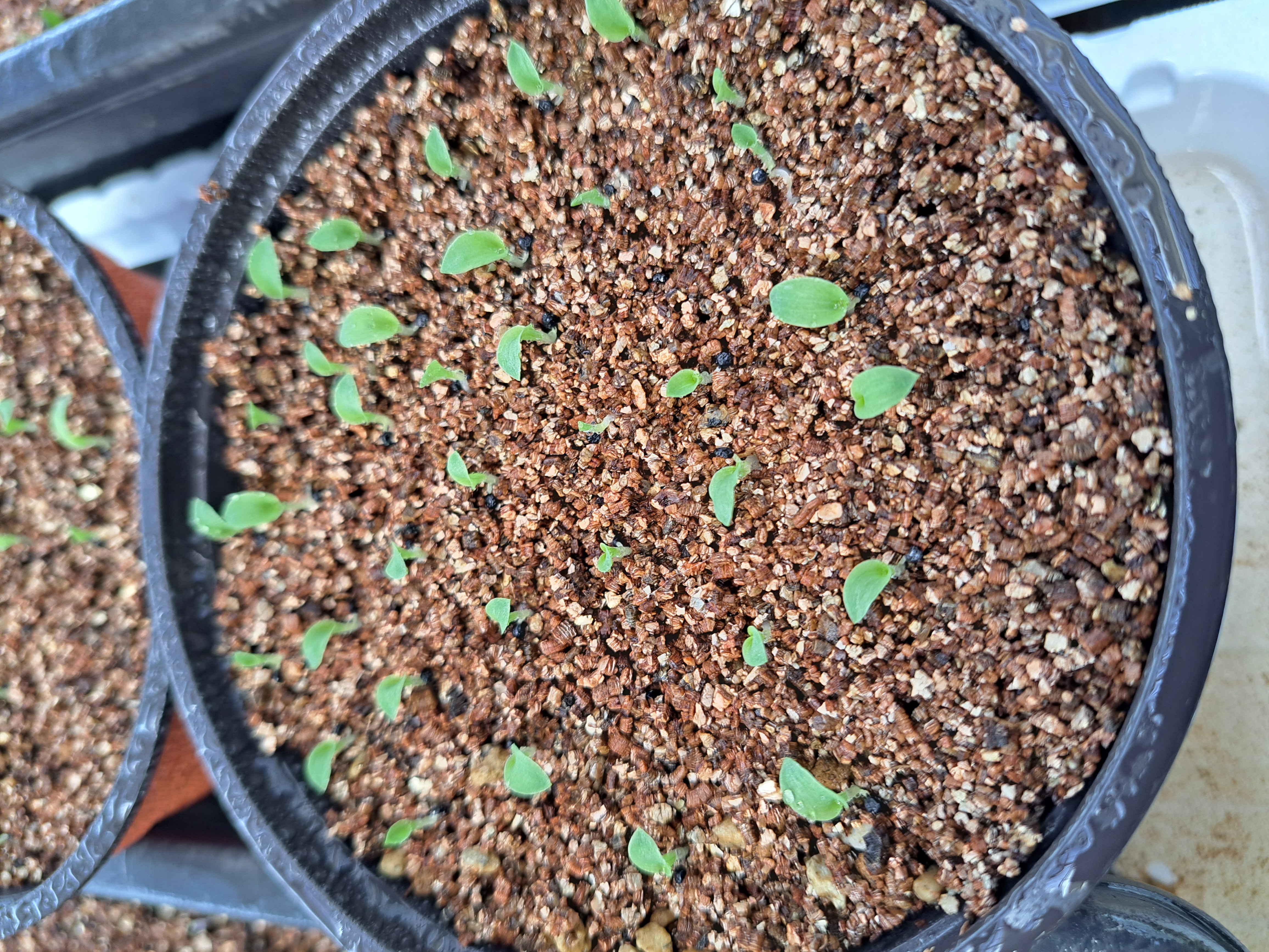 赤玉メインの用土に細目のバーミキュライトを敷き播種