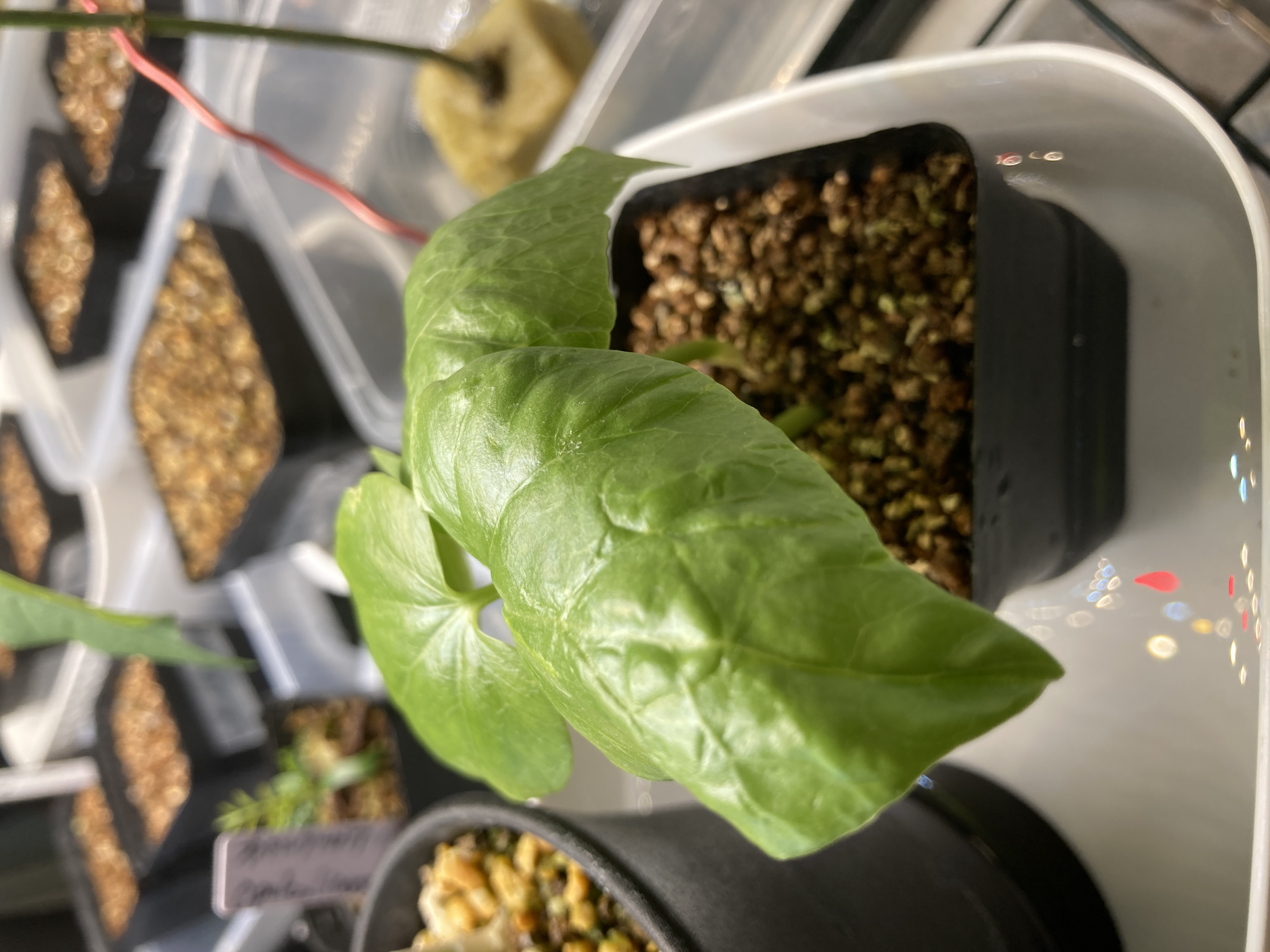 腰水、霧吹きで様子を見ていたら少しずつ緑が濃くなり軸が伸びている