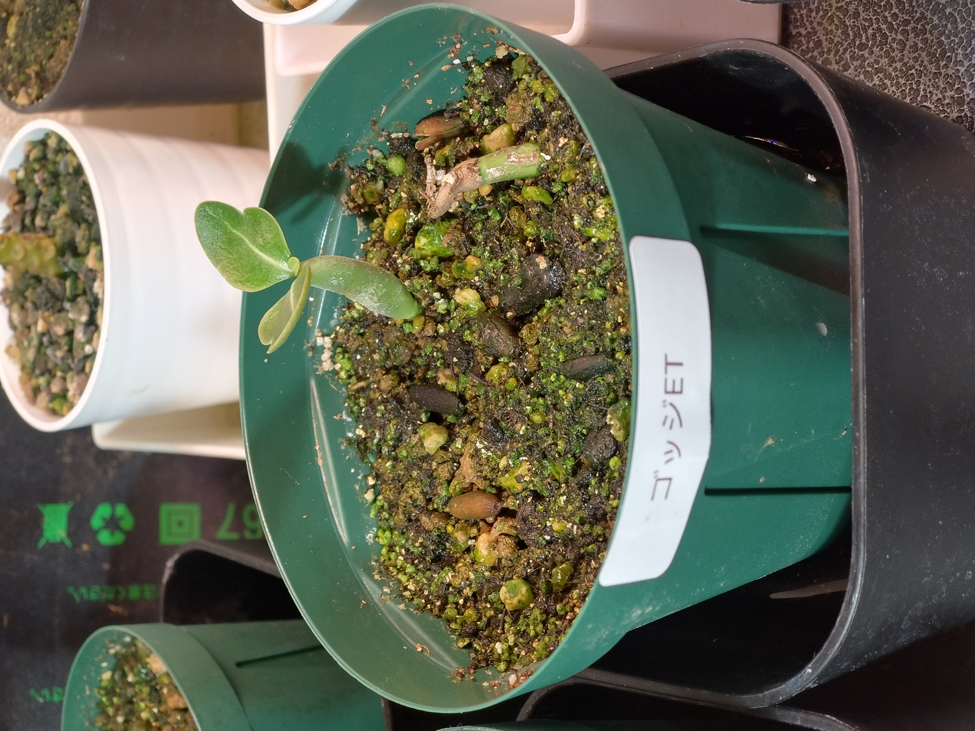 栽培用土と赤土玉を混ぜた用土の上に播種。