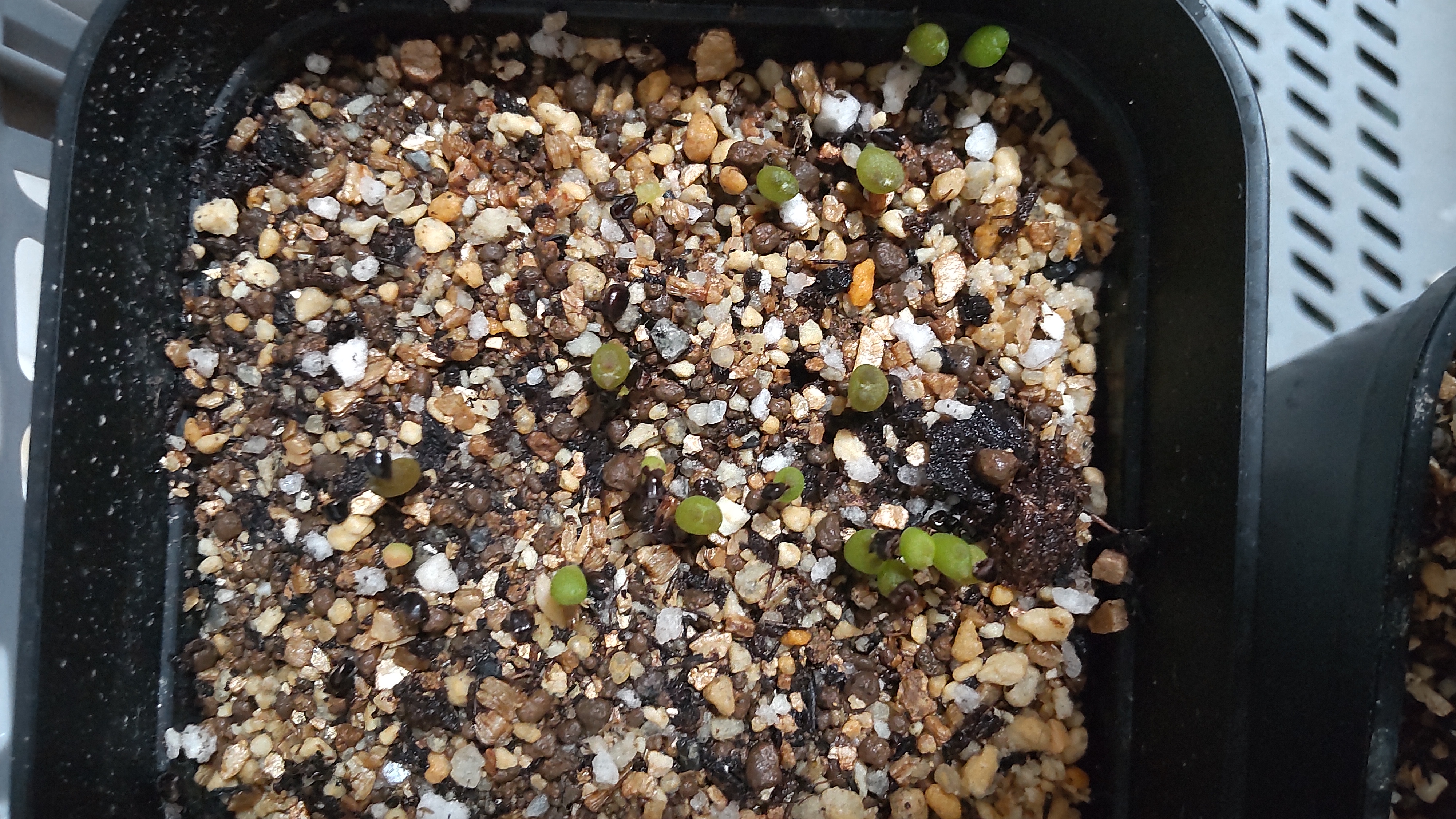 種まき用土に覆土せずバラバラにまいた。