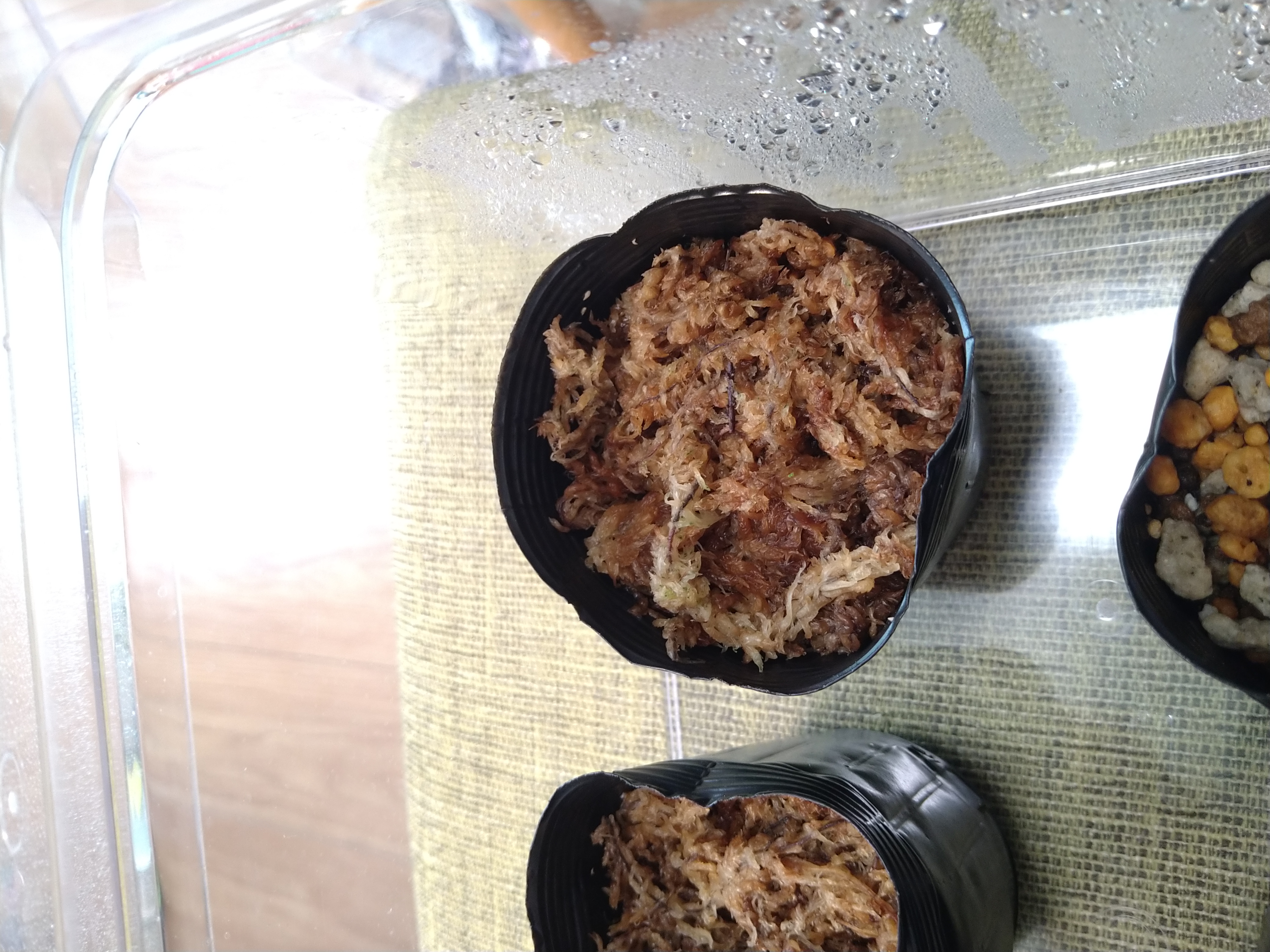 密閉容器に入れて25〜30の室内蛍光灯の光が当たる場所で管理。発芽はしましたがほんの少しいじったら消えてしまいました…