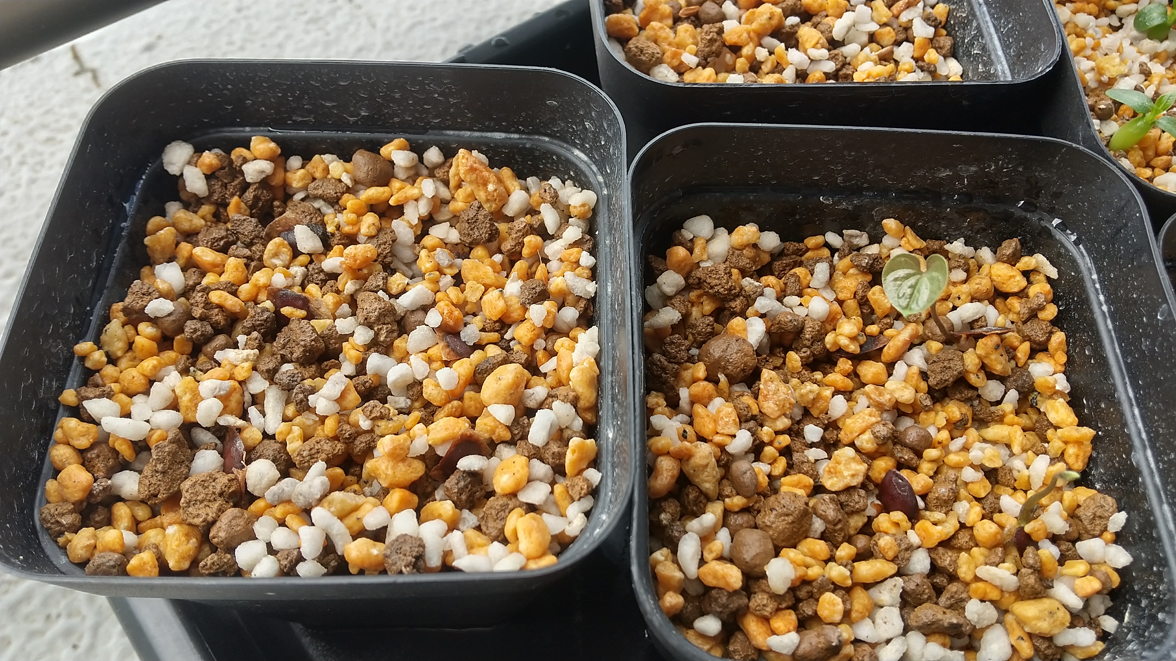 [ 播種数 / 発芽数 ]12粒/ 2粒[ その他(用土や管理方法など)]播種前にベンレート溶液に12h程度浸漬屋内用多肉の土に浅く覆土 25度〜30度で腰水管理