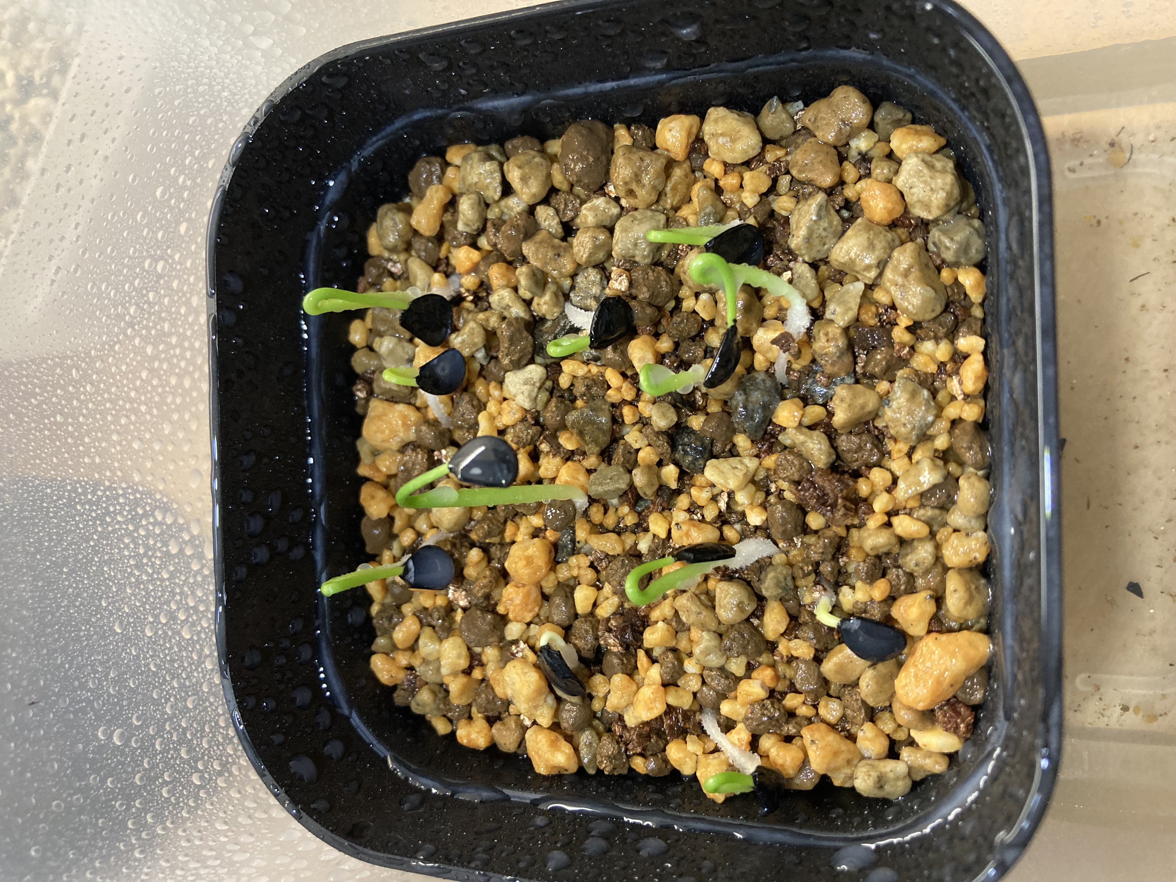 タネの時点で水に24時間つけてから、アガベ等に使用している土を使い撒き、2000倍のベンレートスプレーで加湿しました。