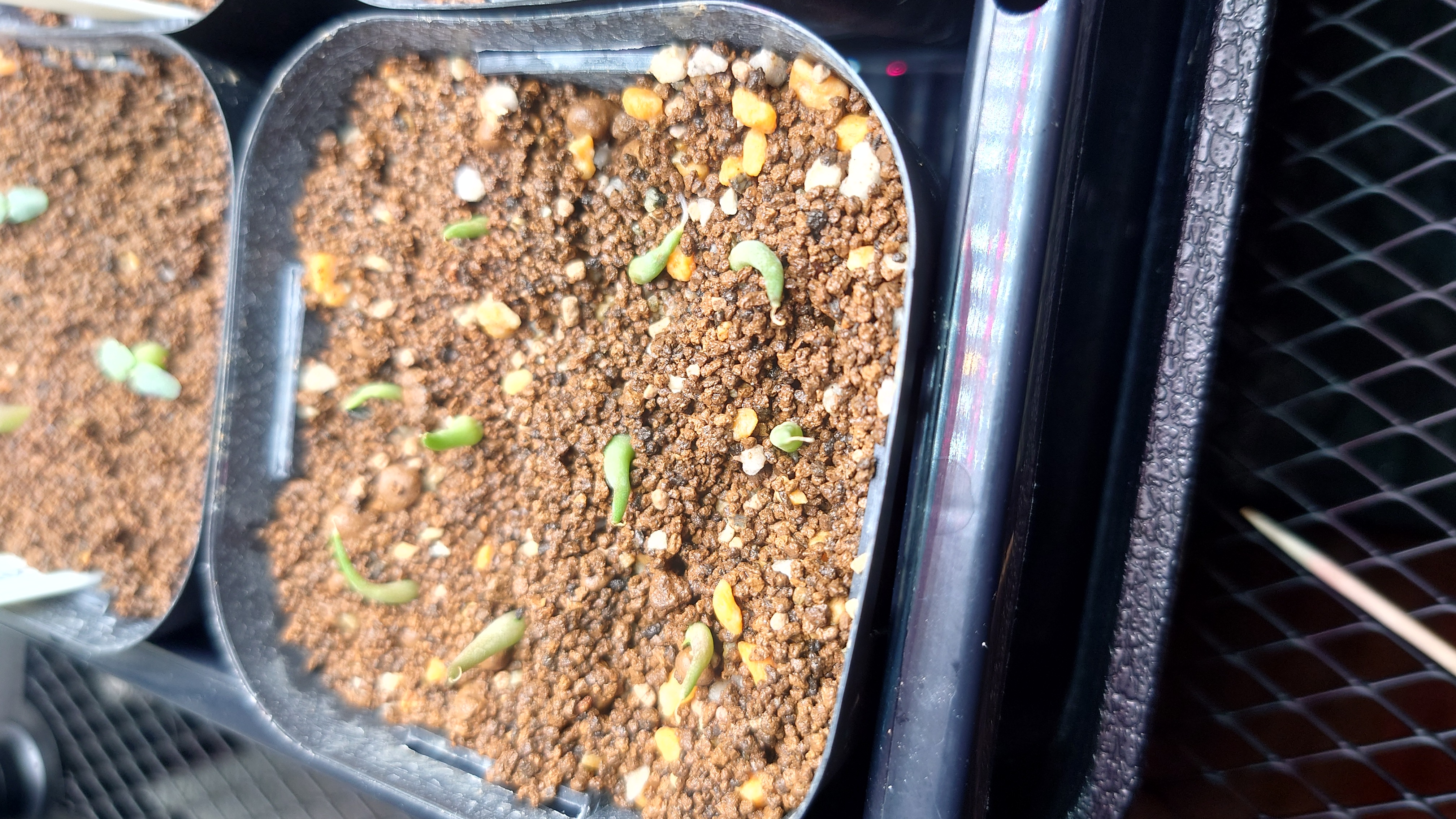 底石→観葉植物の土→バーミキュライト→赤玉細粒 腰水管理 LEDライト12時間くらい照射
