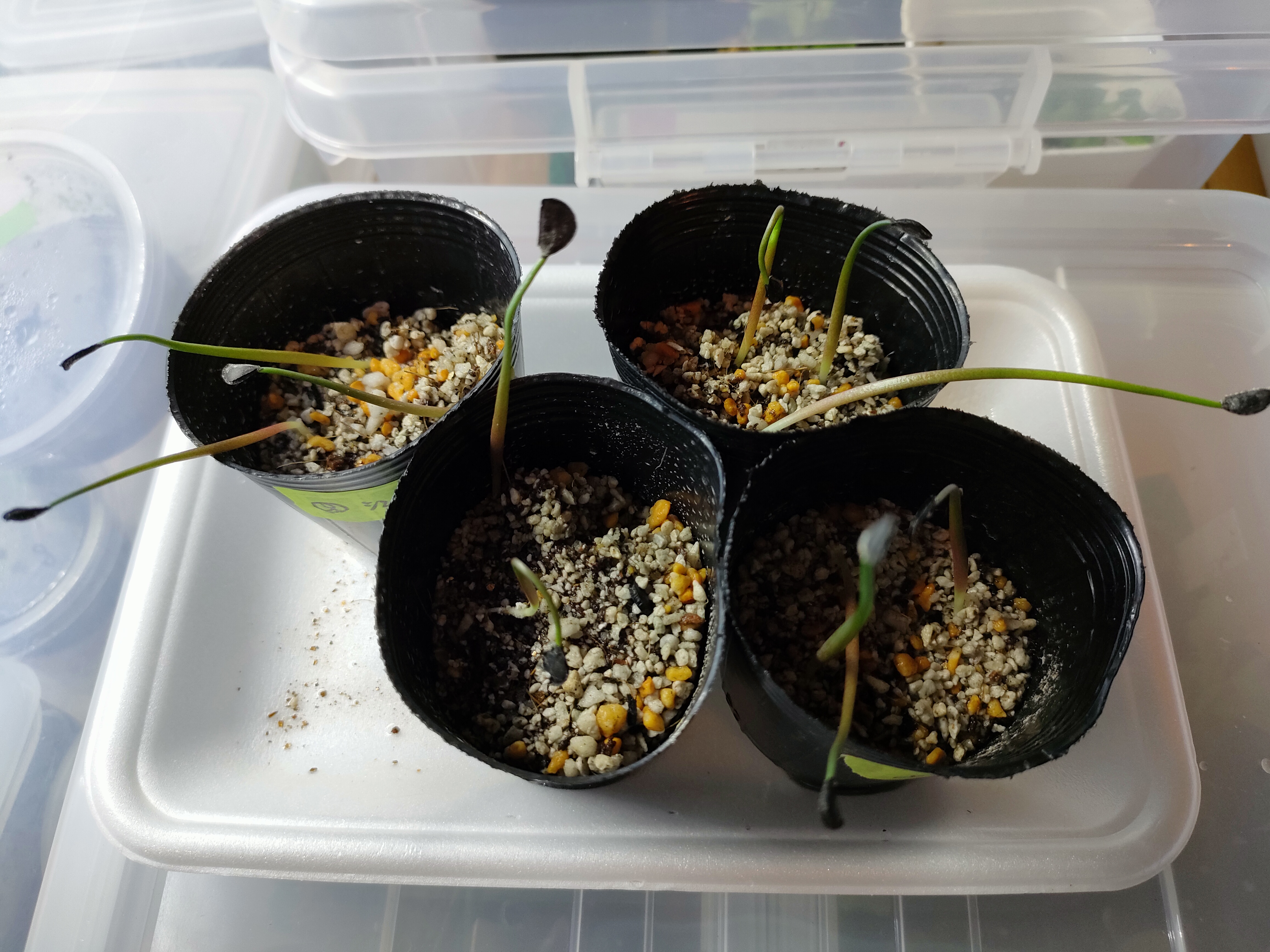 [ 播種日 / 撮影日 ]2024/8/16播種 2024/8/26撮影[ 播種数 / 発芽数 ]12粒/ 11粒[ その他(用土や管理方法など)]播種前にメネデール溶液に1.5日程度浸漬サボテン培養土に播種