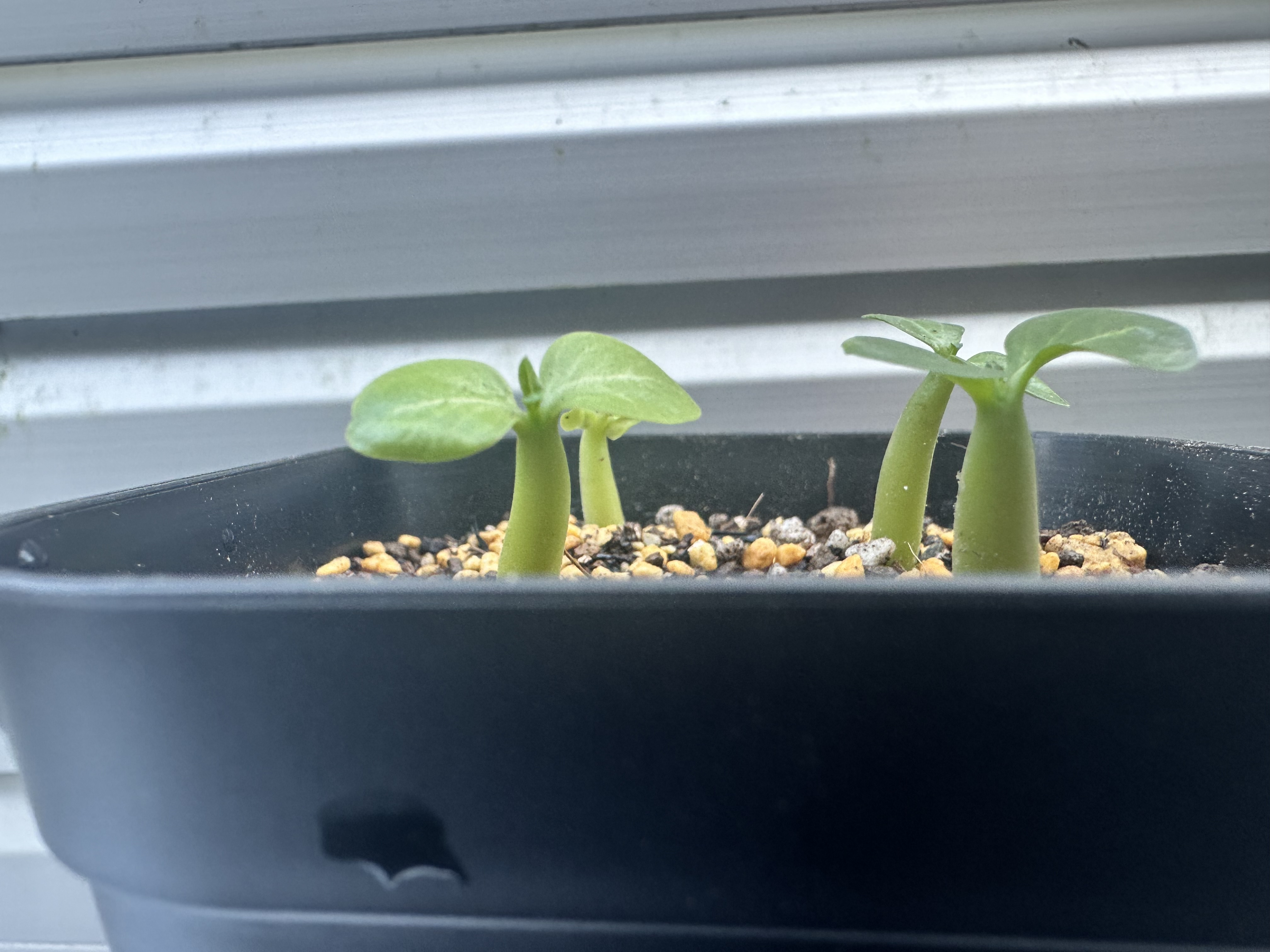 約1ヶ月の様子[ 播種数 / 発芽数 ]4粒/ 4粒[ その他(用土や管理方法など)]播種前に水道に一晩程度浸漬