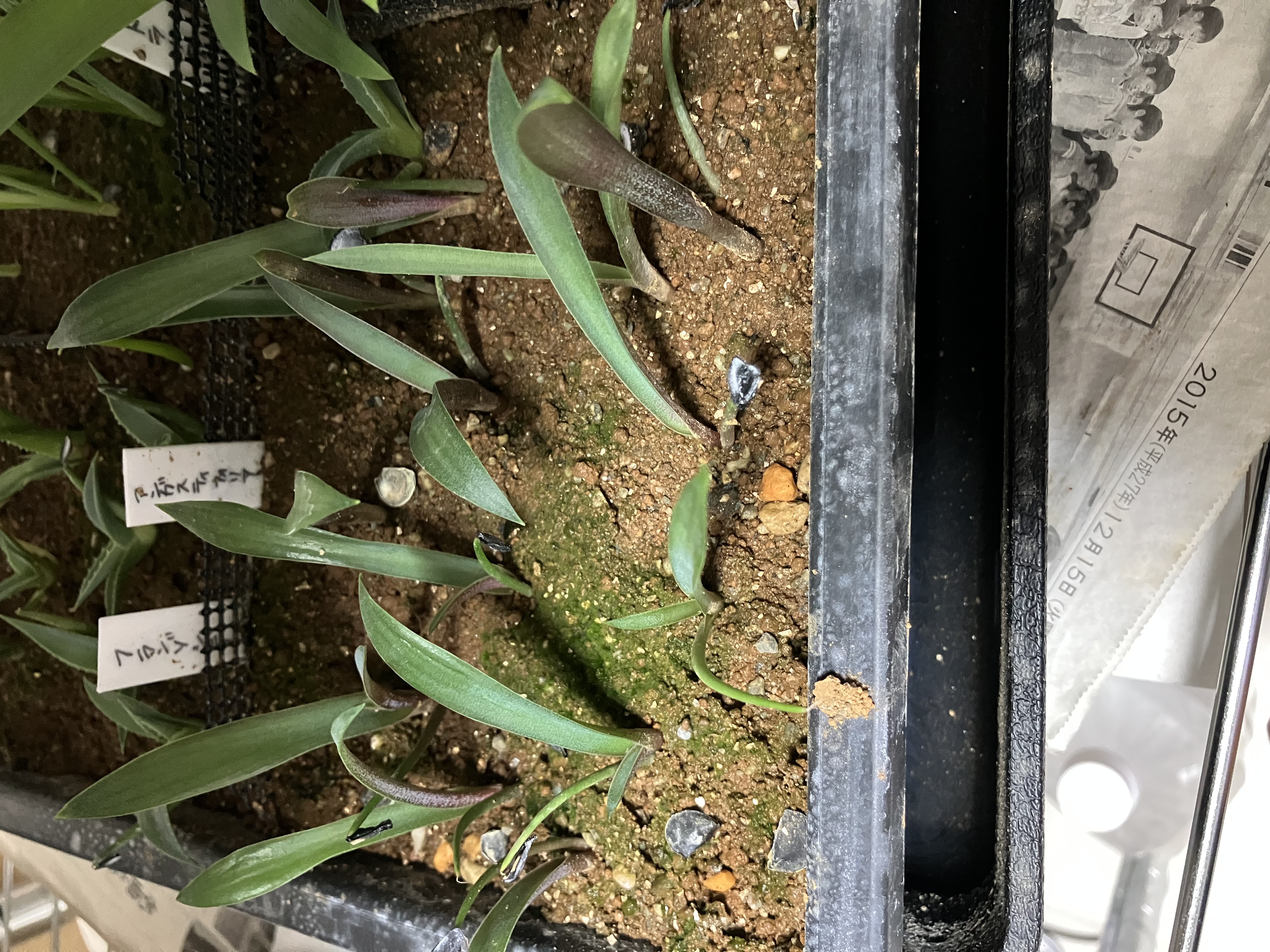 播種から2週間はベンレート希釈水で腰水管理、朝、晩に霧吹きで噴霧。赤玉中粒メインの用土に表土5㎝くらいは芝の目土(赤玉細粒肥料入り)を敷き播種、20度〜25度で管理。