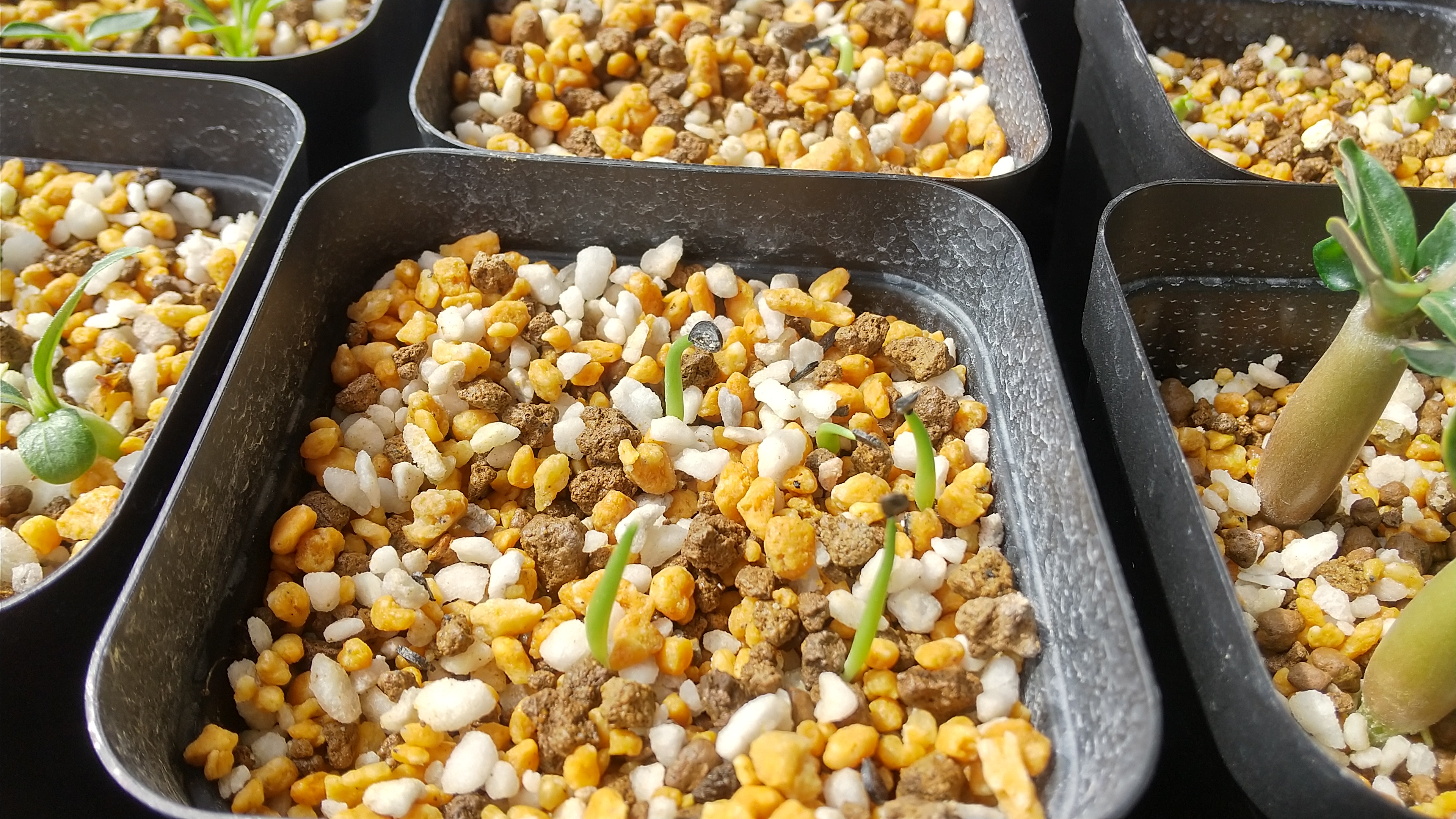 [ 播種日 / 撮影日 ]2024/9/14播種 2024/9/21撮影[ 播種数 / 発芽数 ]12粒/ 7粒[ その他(用土や管理方法など)]播種前にベンレート溶液に1日程度浸漬プロトリーフ屋内多肉の土に播種、25~30度で腰水管理