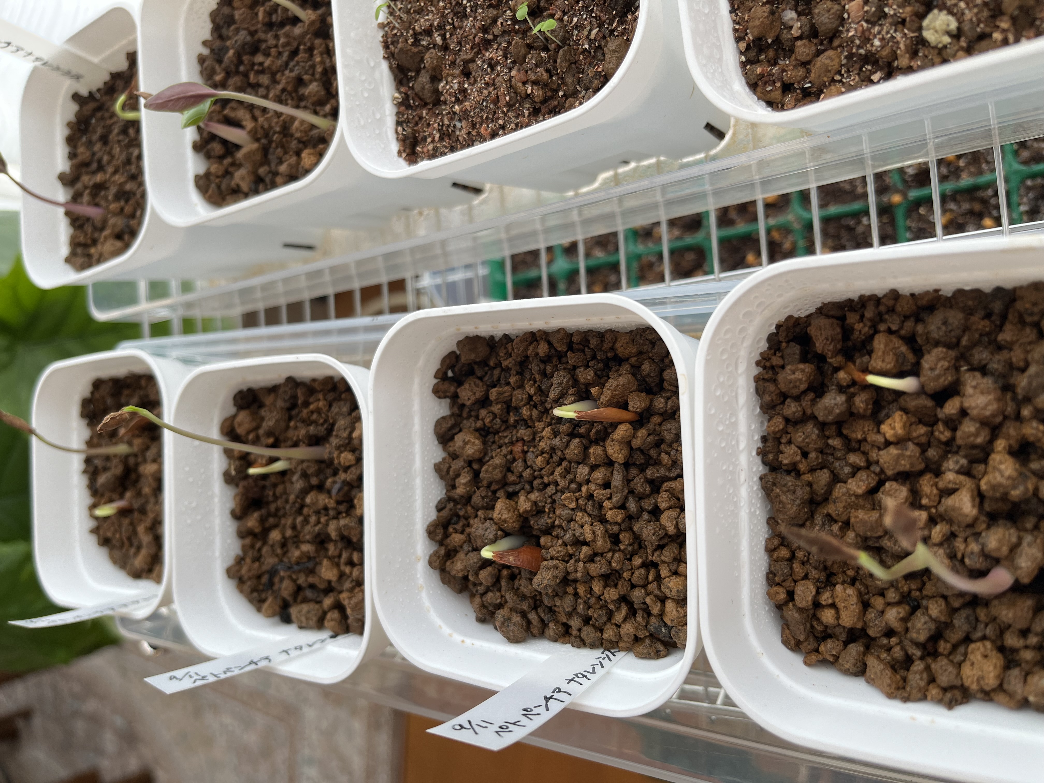 4/1播種、4/25撮影発芽まで少し時間かかりますが、発芽率は良好デス。室温20度前後、腰水管理。