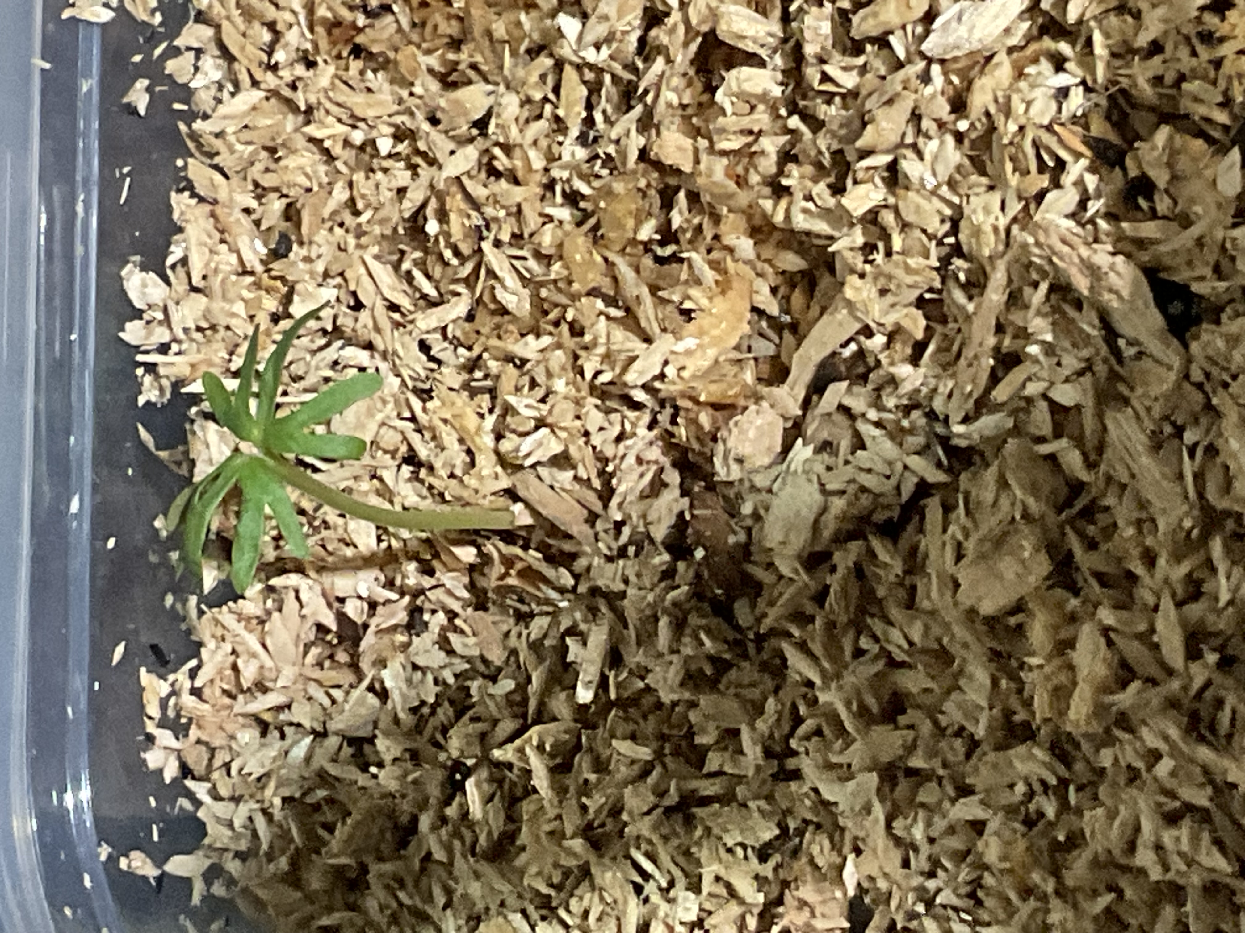 [ 播種数 / 発芽数 ]6粒/ 1粒[ その他(用土や管理方法など)]種の先端をヤスリで軽く擦り、播種前にメネデール溶液に1日程度浸漬少量の木片をライターで炙って炭化させたものを混ぜ込んだエコスギ・バイオに播種。25度〜30度で管理。