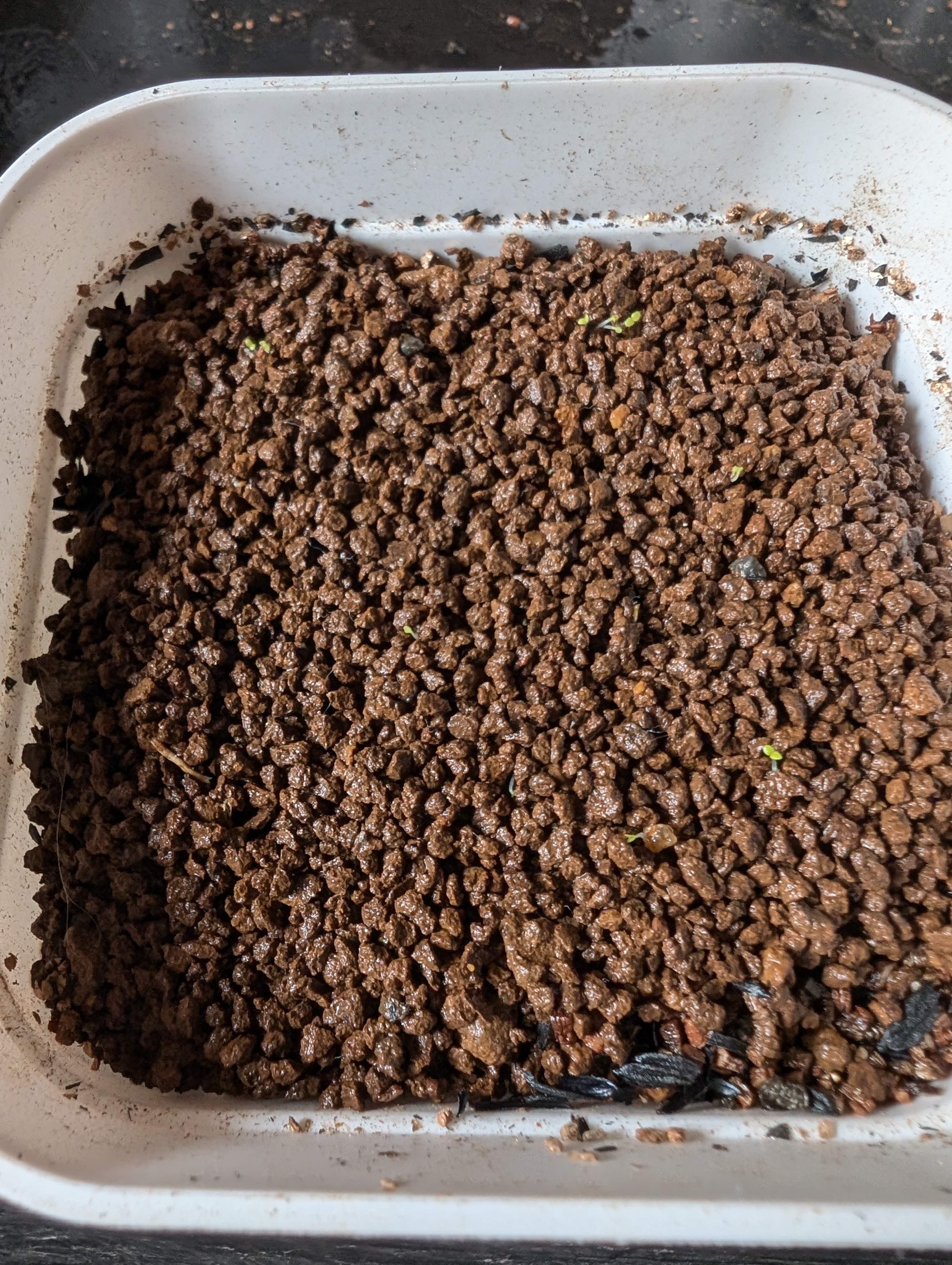 赤玉土小粒4:バーミキュライト4:燻炭1の土に赤玉土細粒を薄く敷いて播種