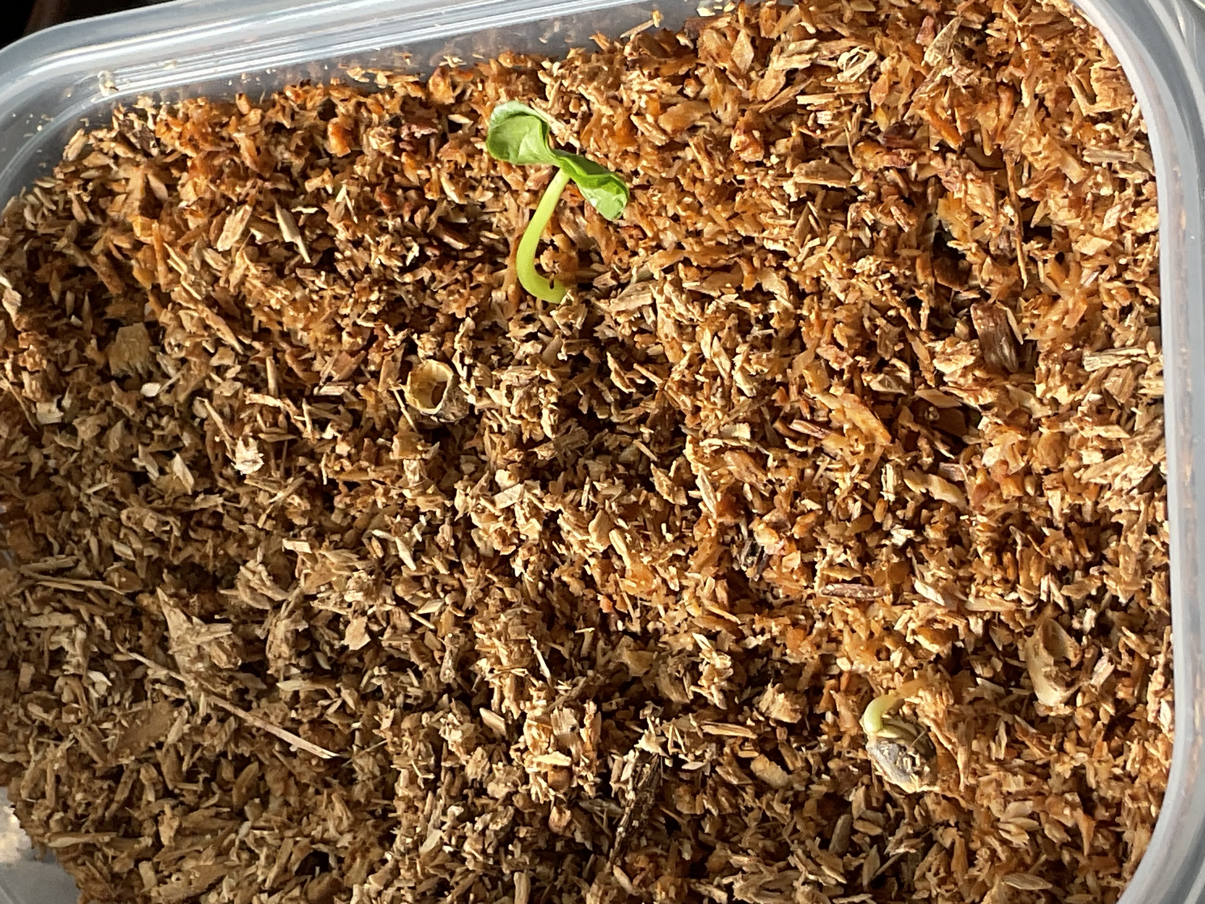 発芽した内の一粒(画像左下)はとても弱々しいのでちょっとダメかも…。