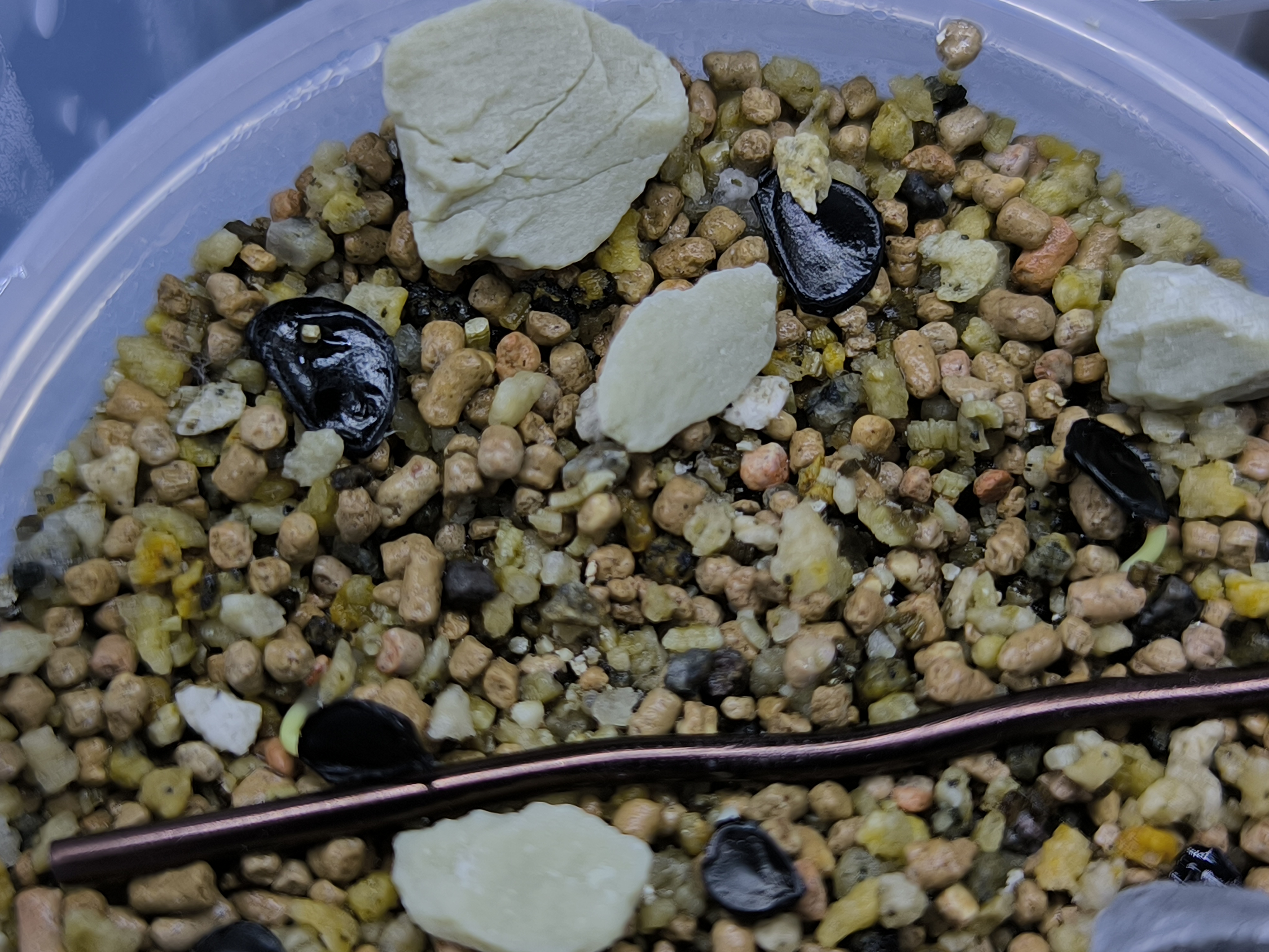 播種前に8時間水道水に浸し、多肉植物用無機用土に播種。