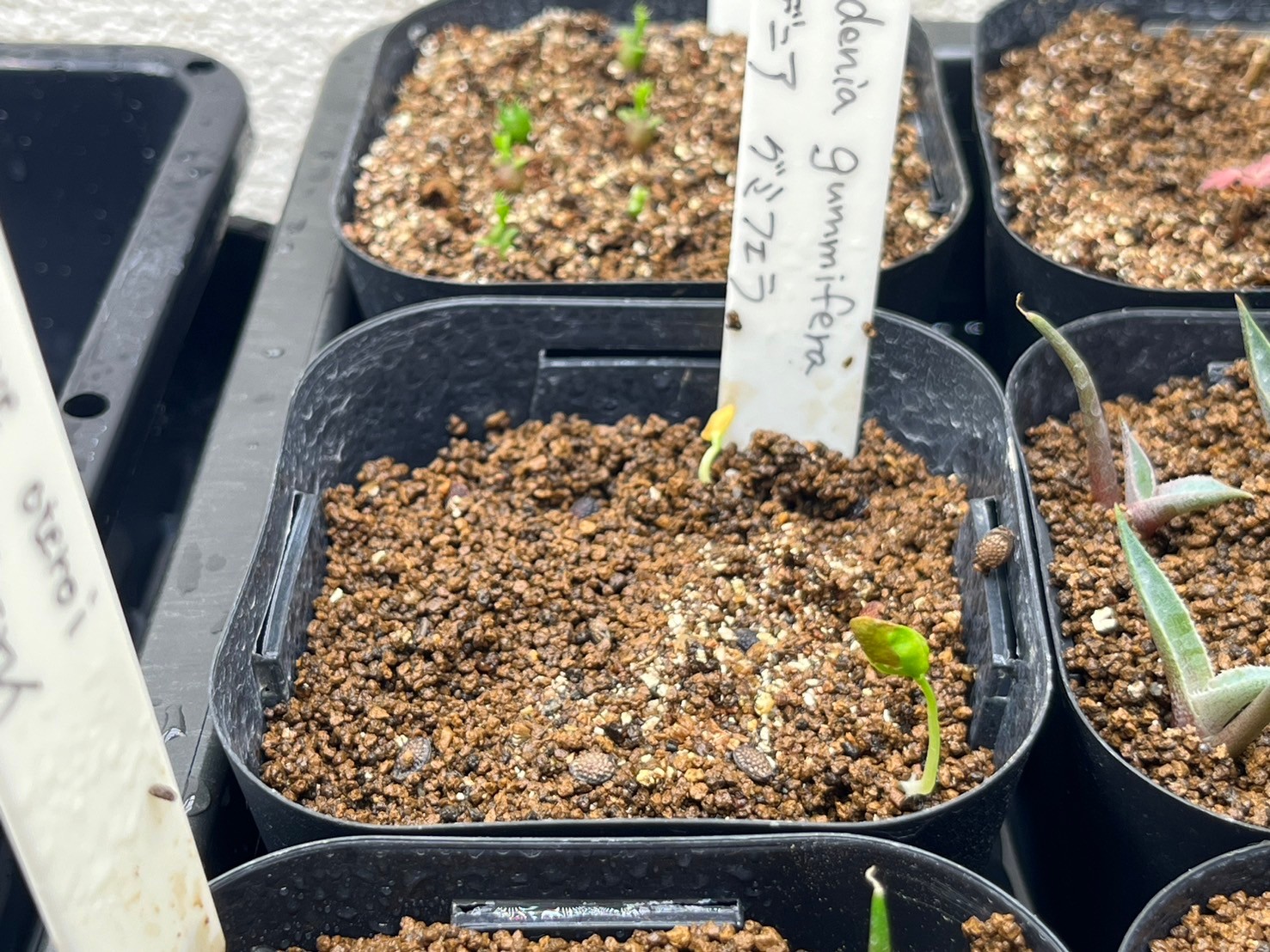 表面に赤玉細粒、中間にバーミキュライト、下段プロトリーフ観葉植物用土