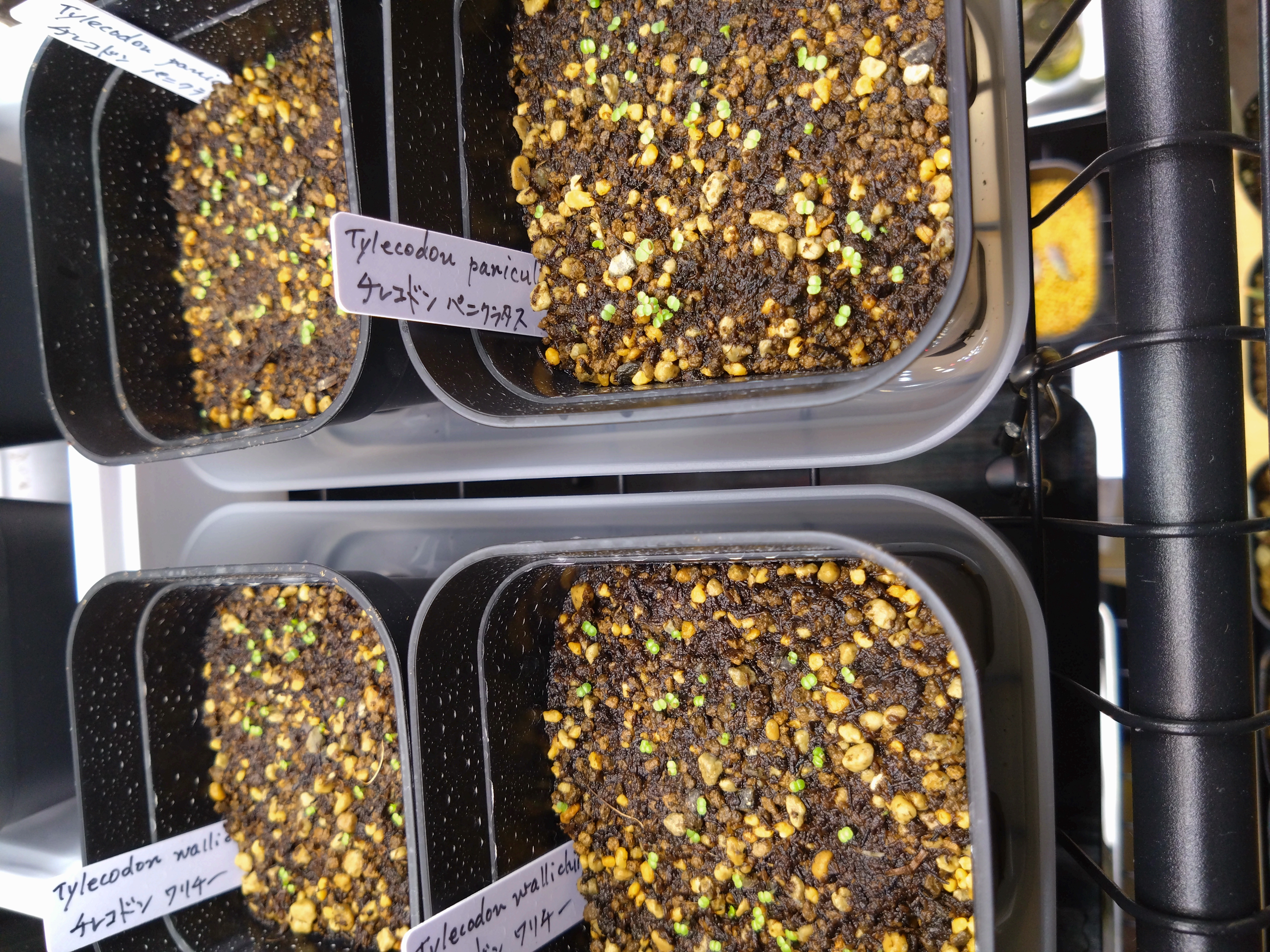 赤玉土と軽石の微粒に、殺菌したジフィーセブンの粉末をまき、その上に播種。