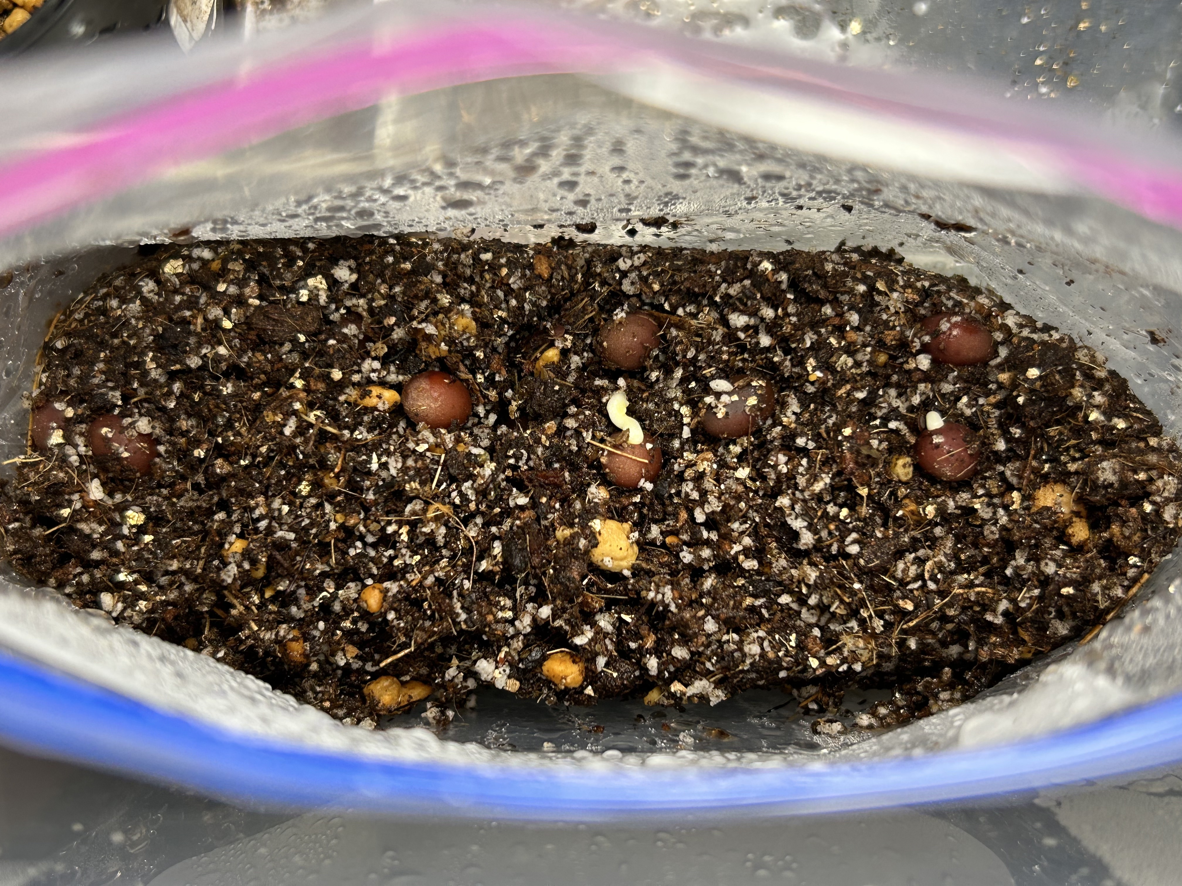 メネデール希釈液に一晩浸した後、ジップロックに種まき用土と一緒に入れた