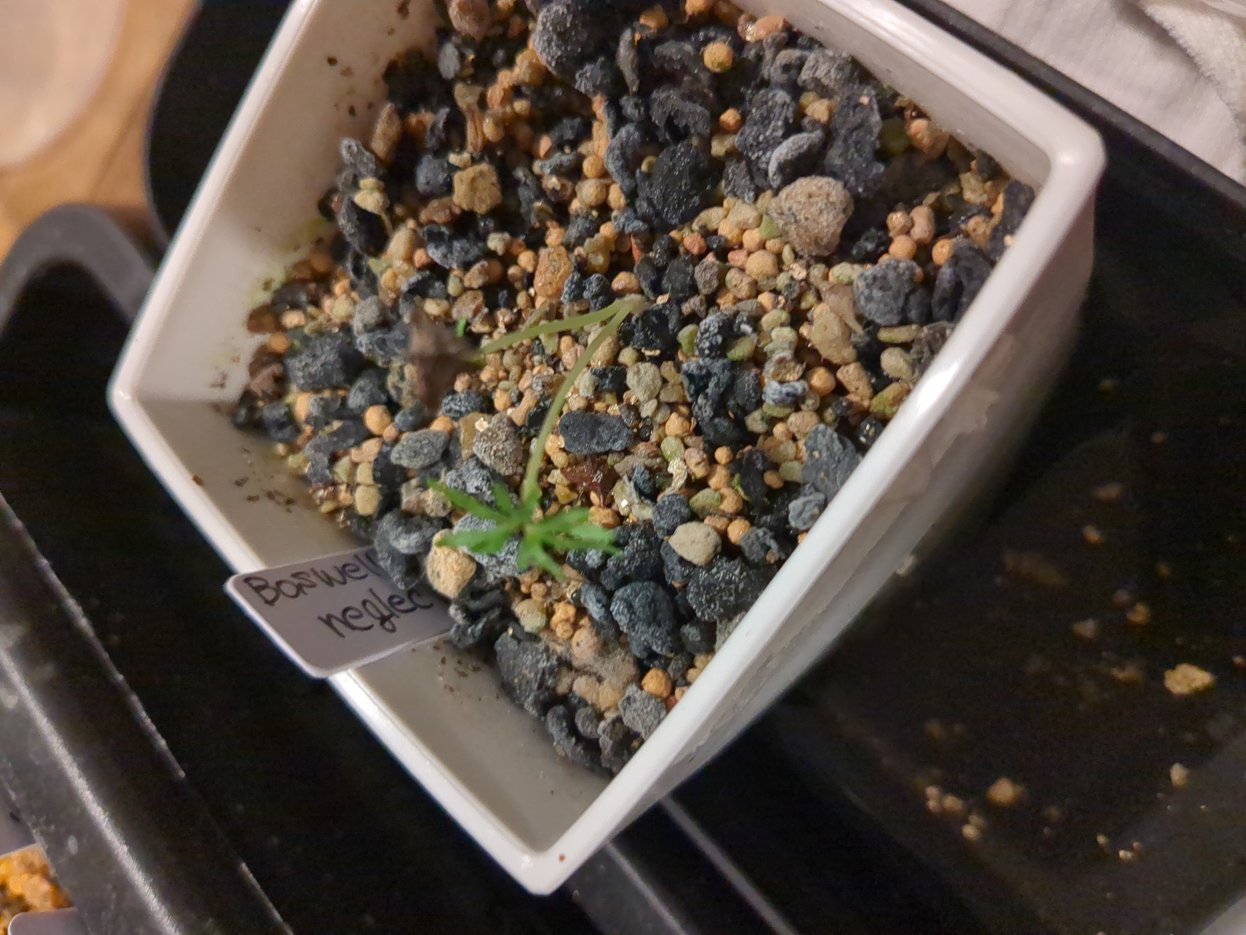過去の発芽報告を見たら炭があると良さそうだったので、鹿沼土細粒の上に木炭を軽く敷き播種。