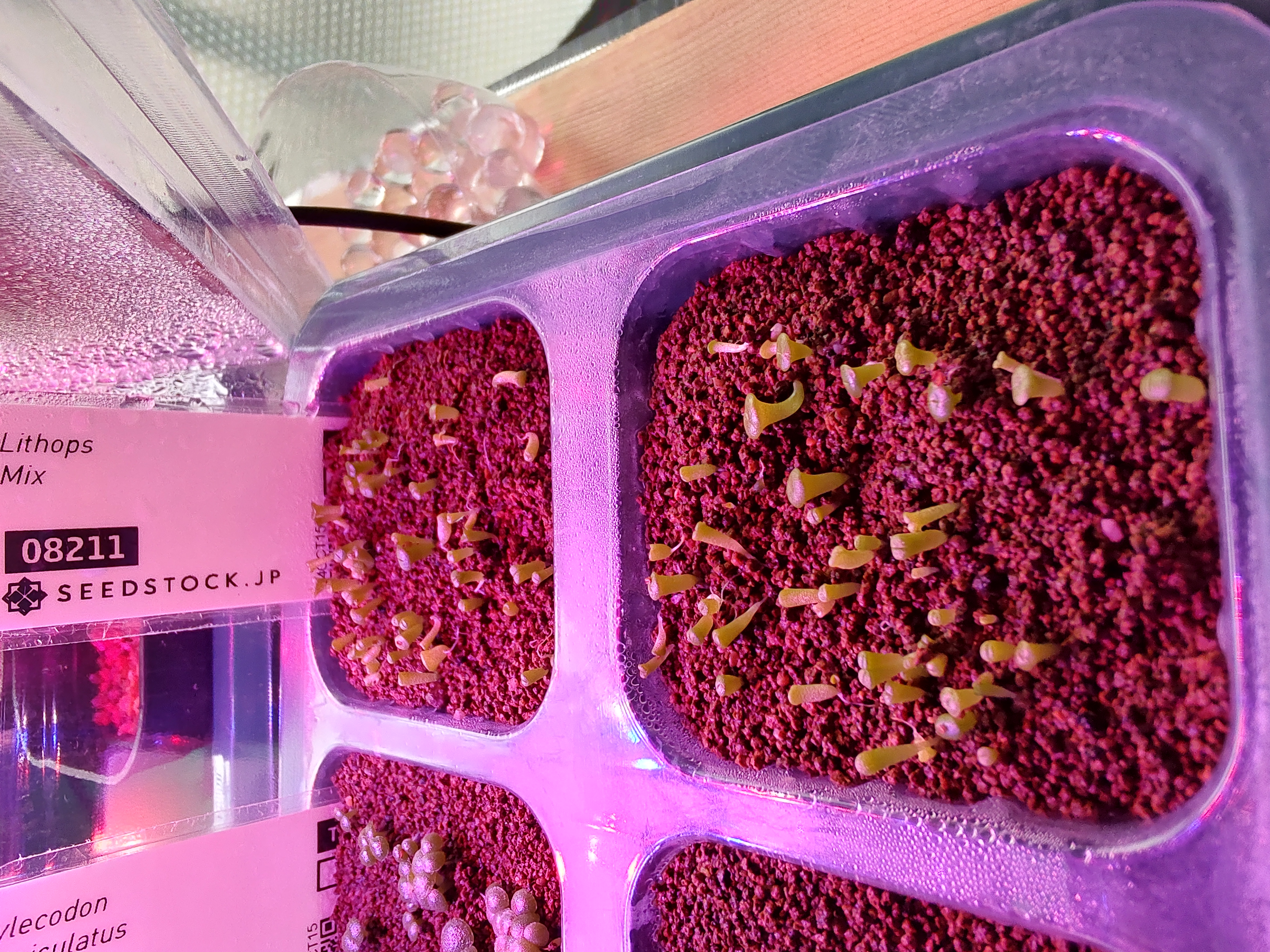 実質赤玉土のみ(下にひゅうが土(中粒))で播種し、20度〜25度で屋内LEDポットにて管理。