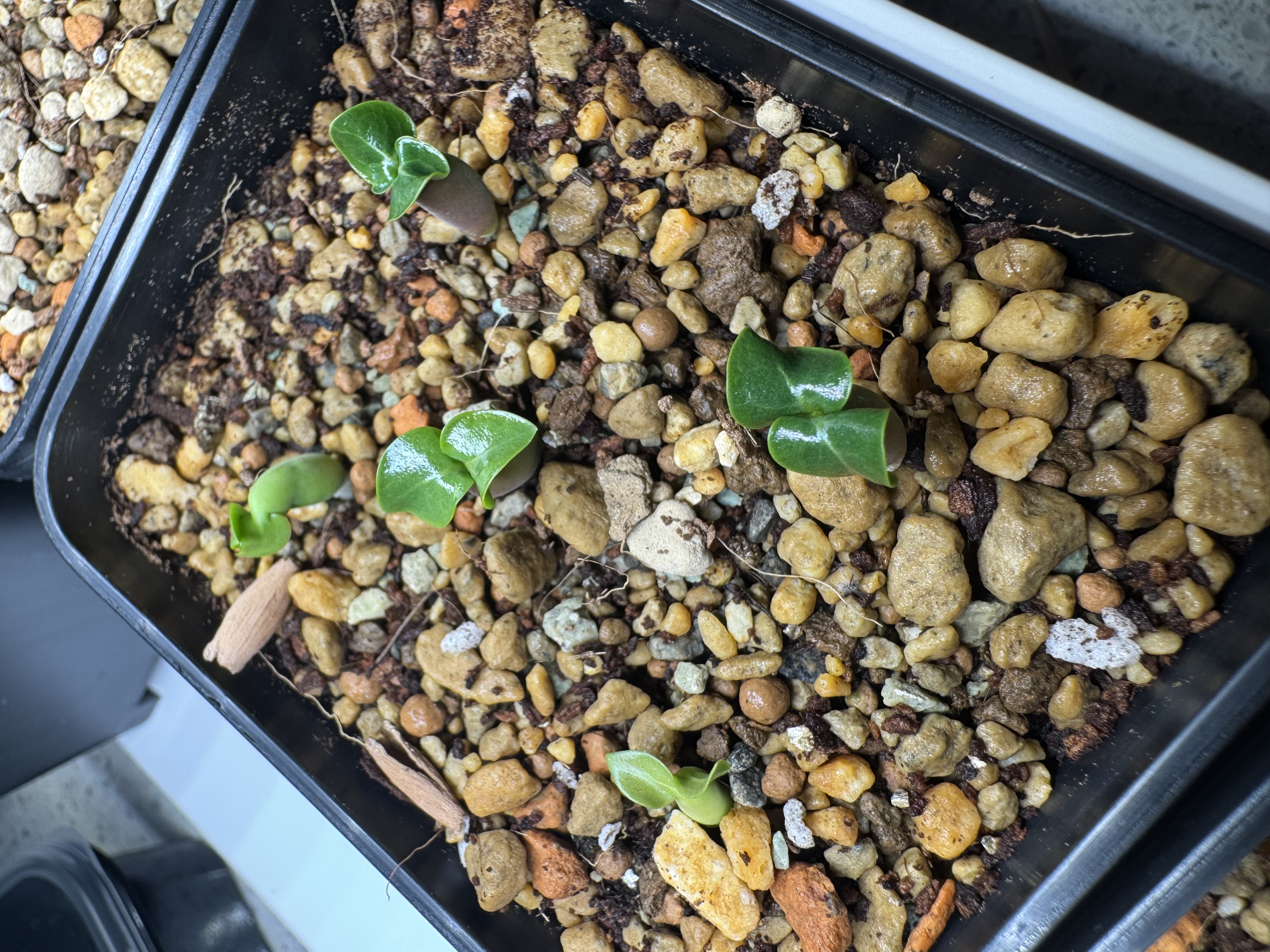 発芽後山野草の土メインの用土に植え、20度〜25度で管理